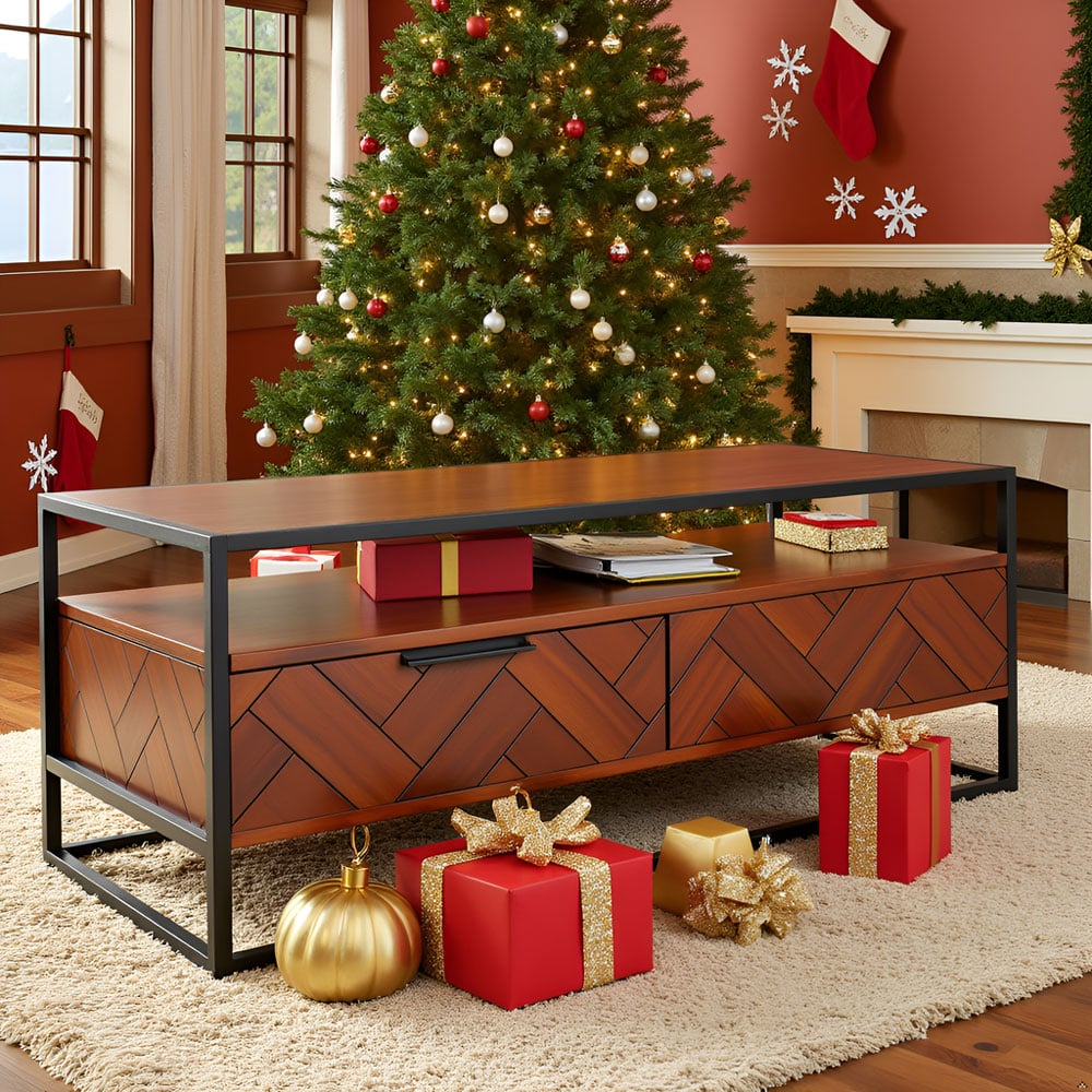 The spacious tabletop provides the perfect surface for décor, books, or everyday essentials, while two smooth-gliding drawers—accessible from both sides—offer convenient hidden storage to keep your living room neat and organized. Built in knock-down (KD) construction for efficient shipping and easy assembly, this coffee table delivers both practicality and long-lasting durability.
