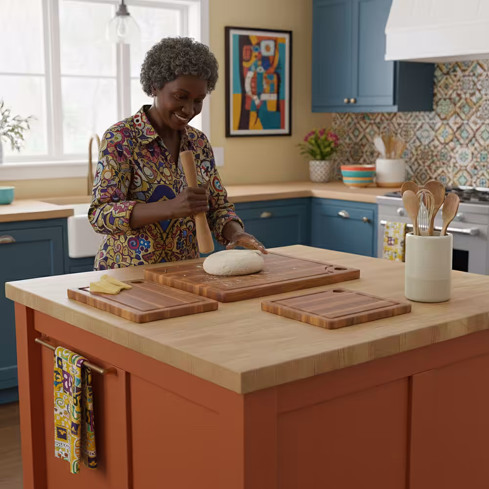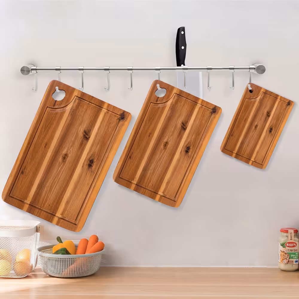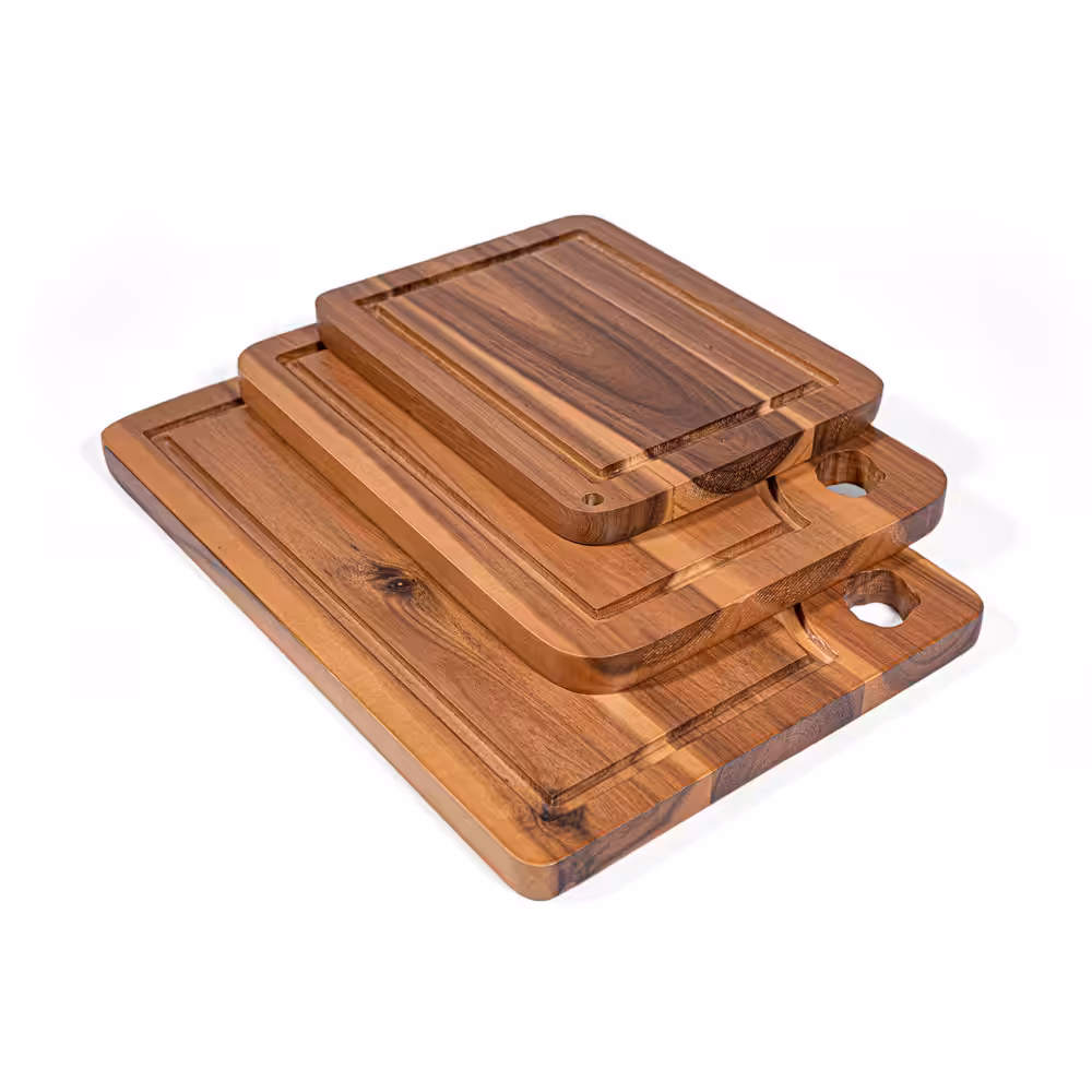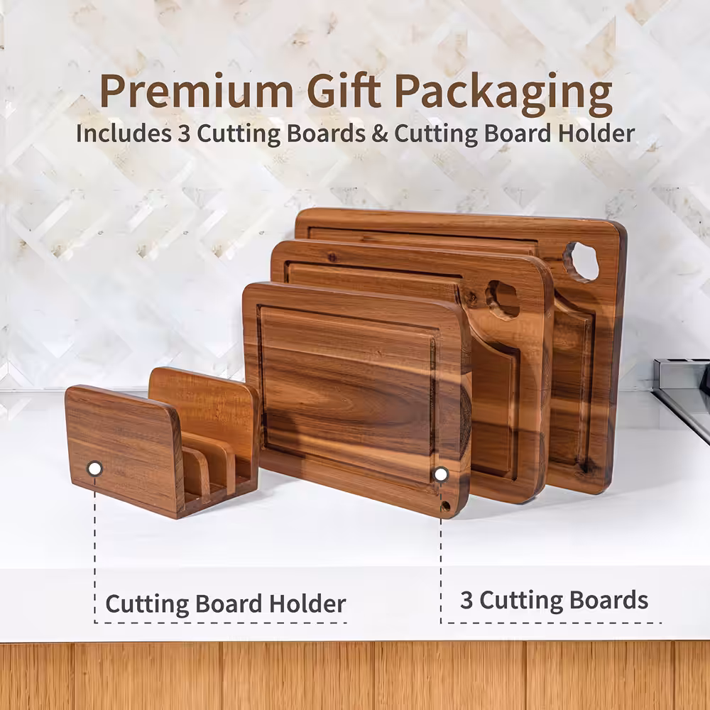 The three practical sizes provide flexibility for different kitchen tasks—from slicing fruits and vegetables to preparing meats or serving bread and cheese. Strong, sturdy, and naturally resistant to moisture, these boards are built to last while adding a warm, modern touch to any countertop.