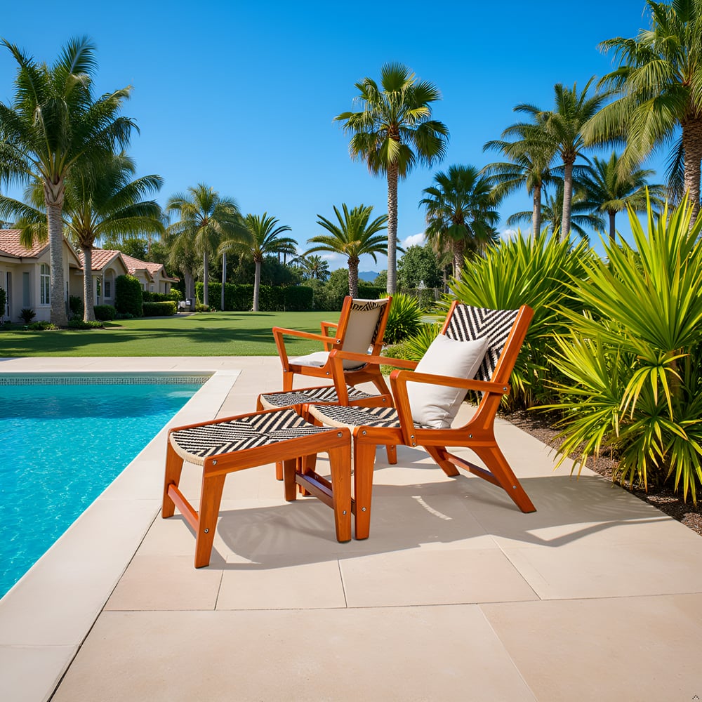 Perfect for poolside lounging, garden reading corners, patios, or resort-style balconies, the sturdy knock-down construction ensures reliable stability and easy assembly. Designed to withstand everyday outdoor use, this lounge set delivers both timeless style and functional comfort for modern outdoor living.