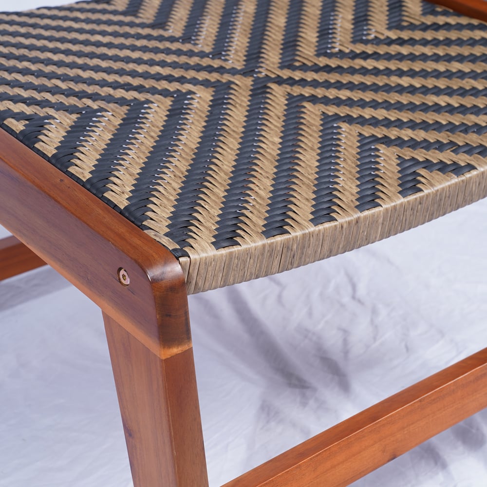 Acacia Wood Patio Lounge Chair with Footrest – PE Wicker Outdoor Relaxation Set