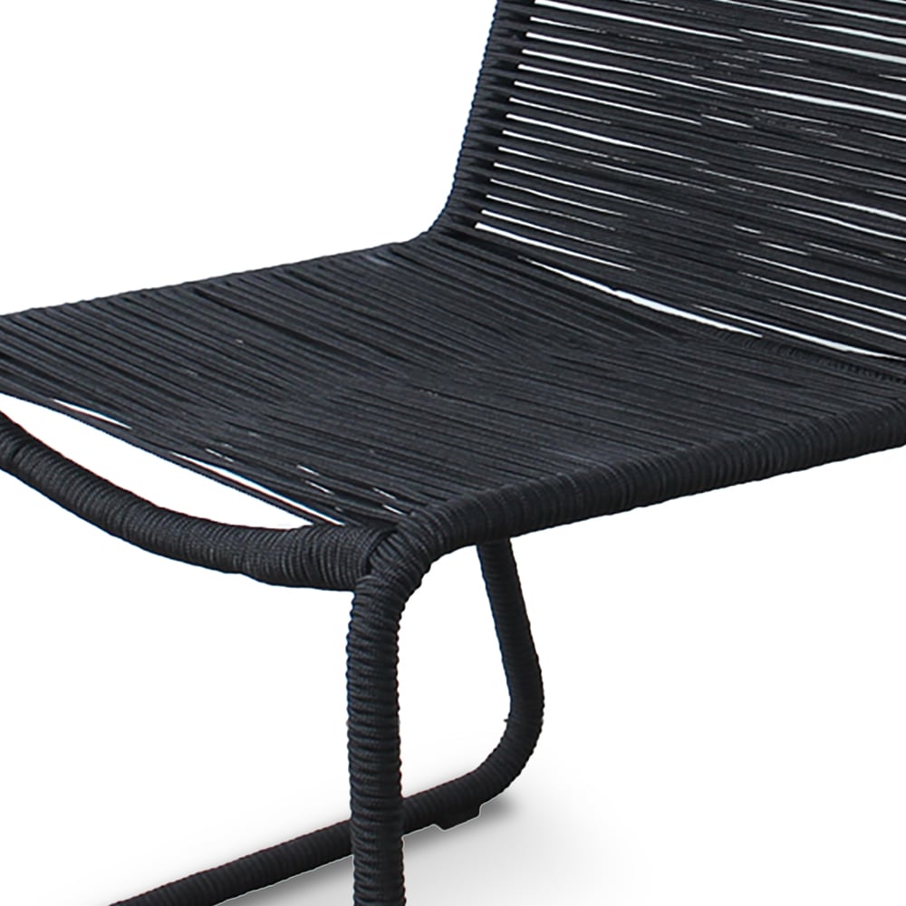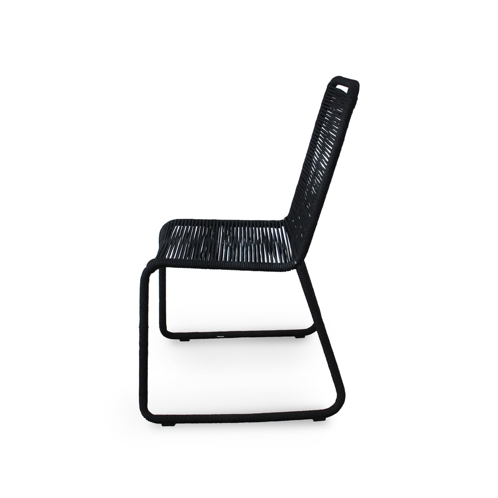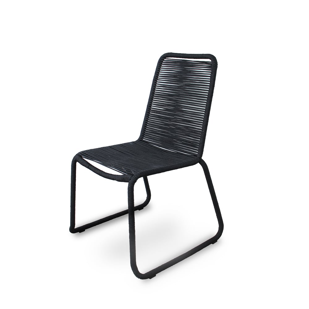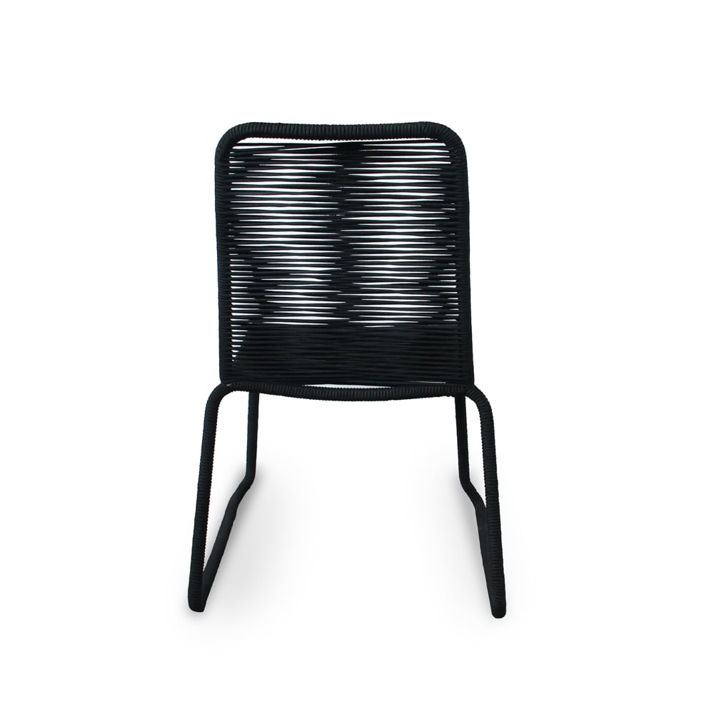Bring modern simplicity and everyday durability to your outdoor space with this set of two black patio stacking chairs. Designed with a sturdy steel frame and wrapped in sleek rope weaving that extends seamlessly through the legs, these chairs deliver both visual elegance and reliable support for patios, balconies, gardens, or outdoor dining areas.
