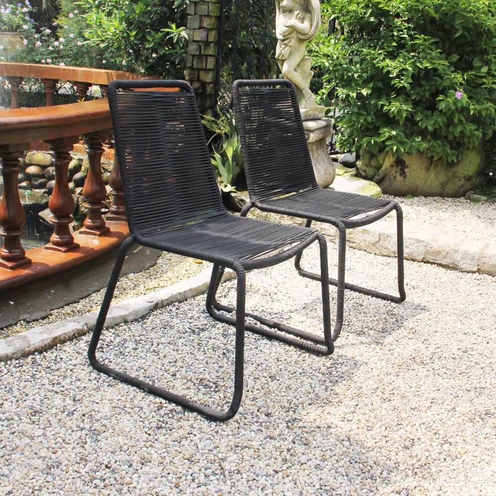 Black Rope Weaving Patio Stacking Chair Set of 2 – Steel Frame Outdoor Dining Chairs