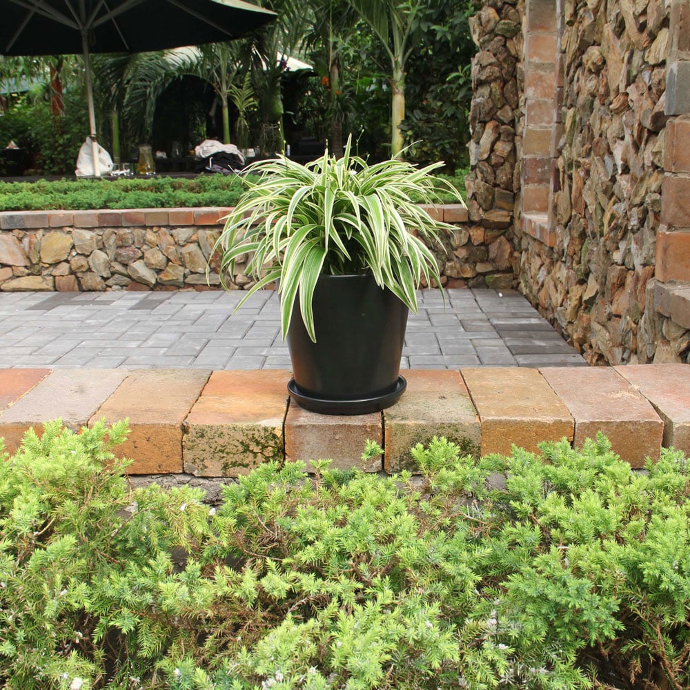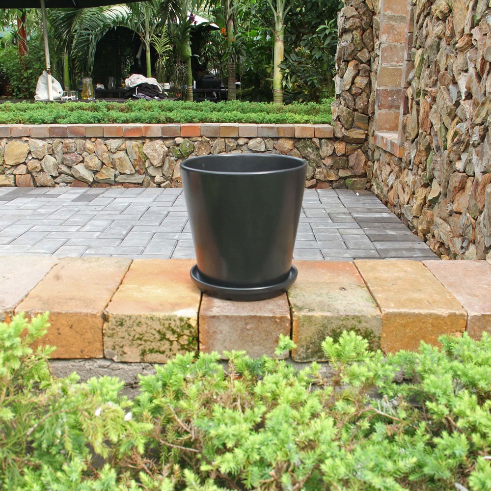 Black Stoneware Indoor Planters with Drainage Hole and Matching Dishes (Set of 2)
