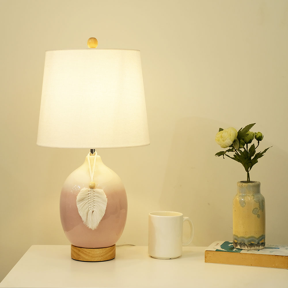 Blush Radiance Ceramic Table Lamp with White Fabric Shade