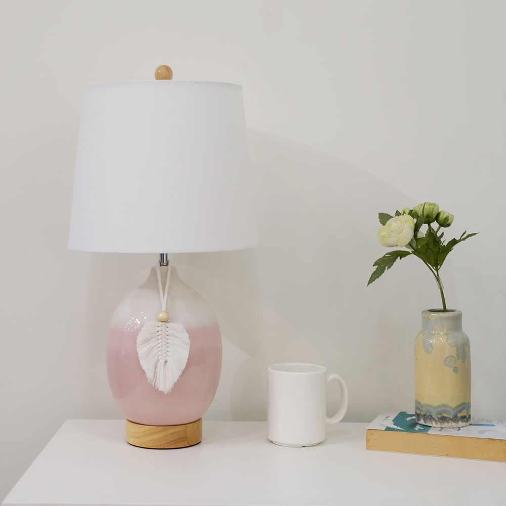 - Versatile Design: The elegant ombre pink ceramic base and neutral shade blend beautifully with a variety of decor styles.