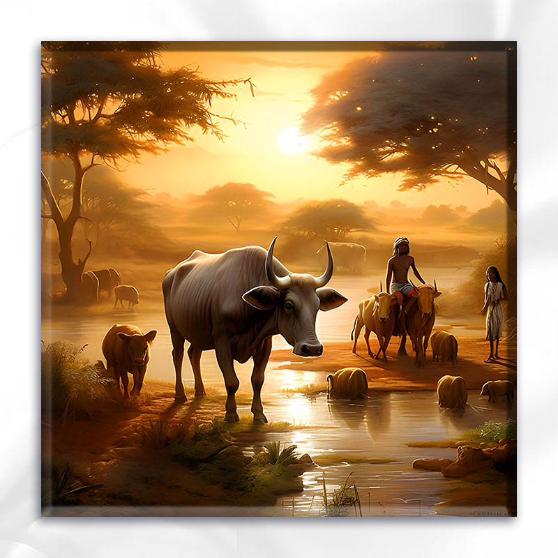 boy herding buffalo in the middle of the field abstract Art Stock Photos