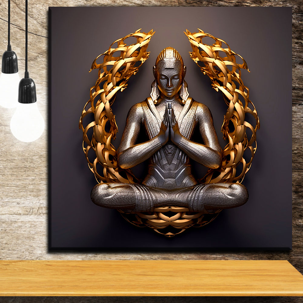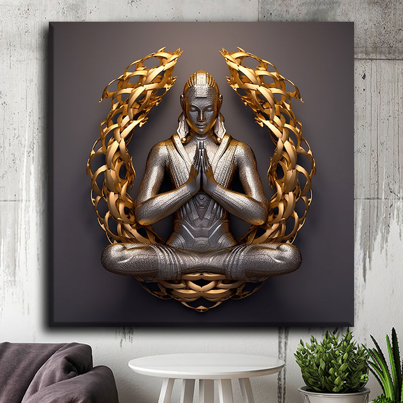 Buddha in Prayer Golden Luxury Metal Wall Art