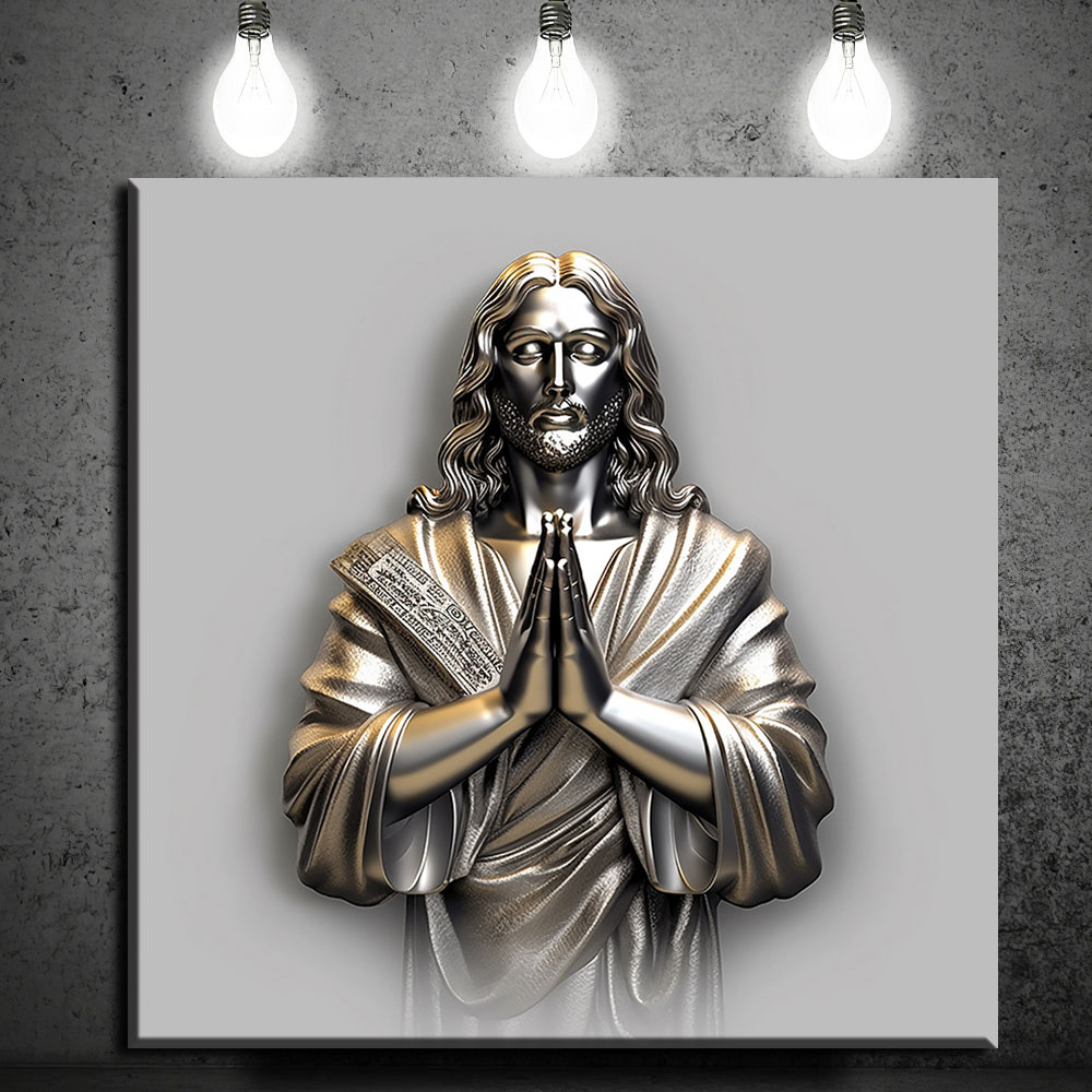 Divine Embrace Jesus Praying in 3D Metal Luxury Art