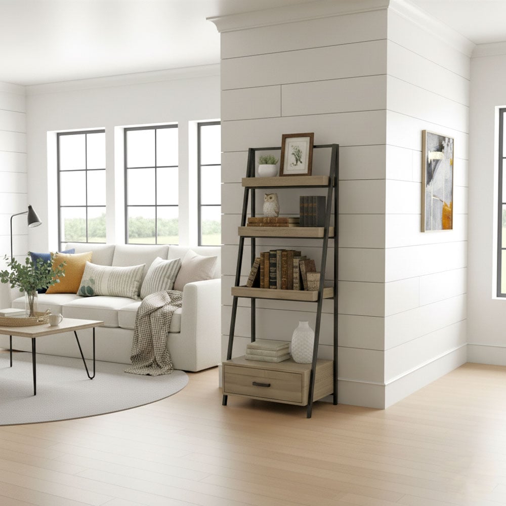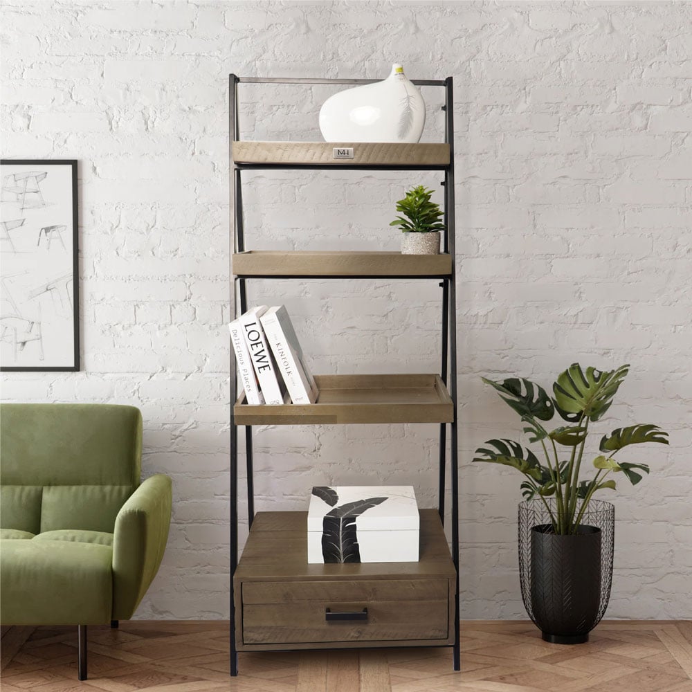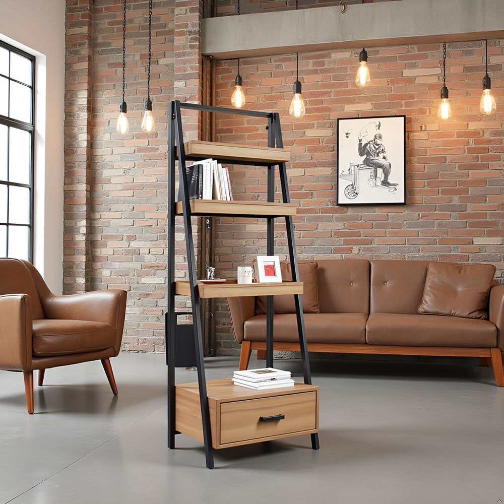 With a harmonious blend of natural wood texture and sleek metal lines, this bookshelf enhances both contemporary and rustic interiors while maximizing organization without overwhelming the room.
