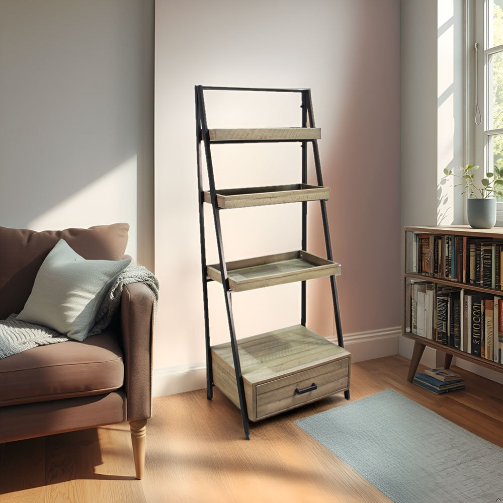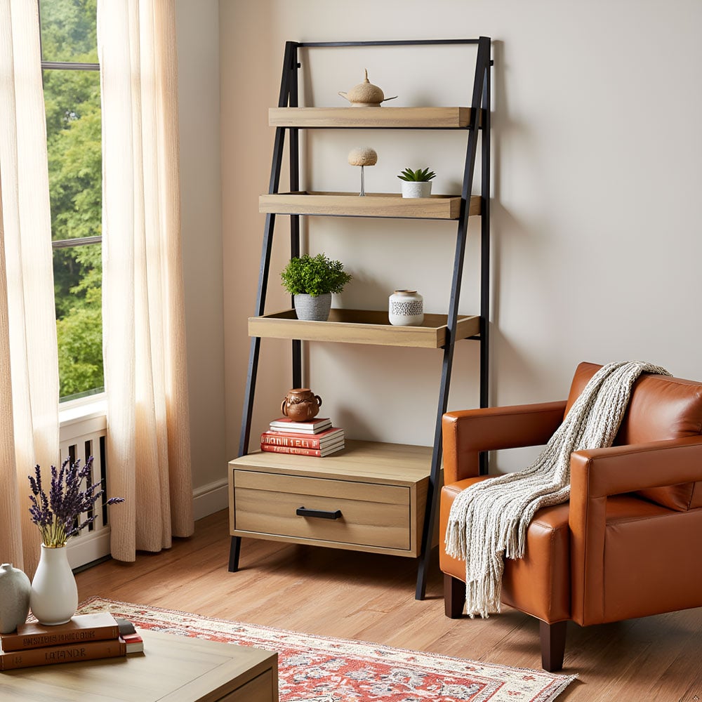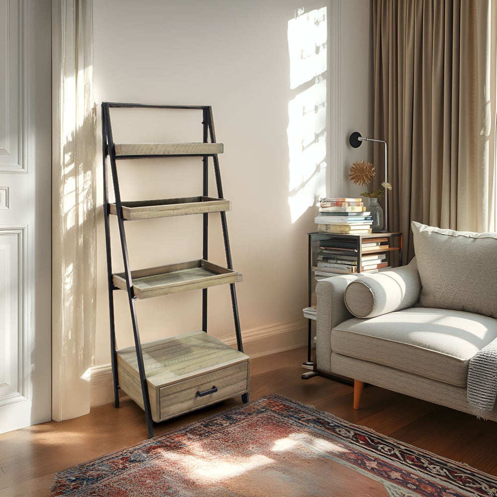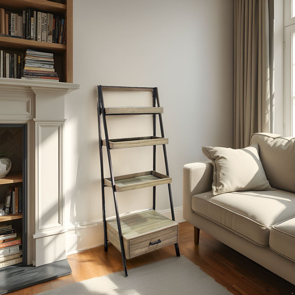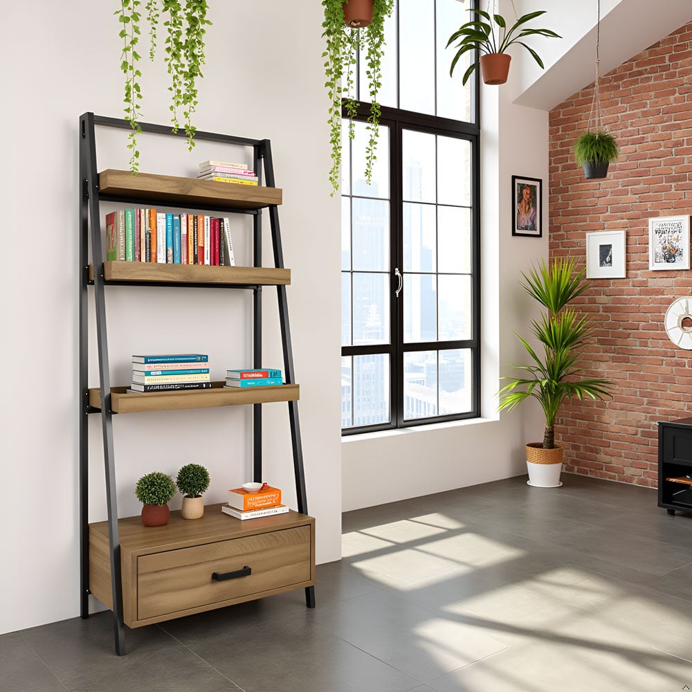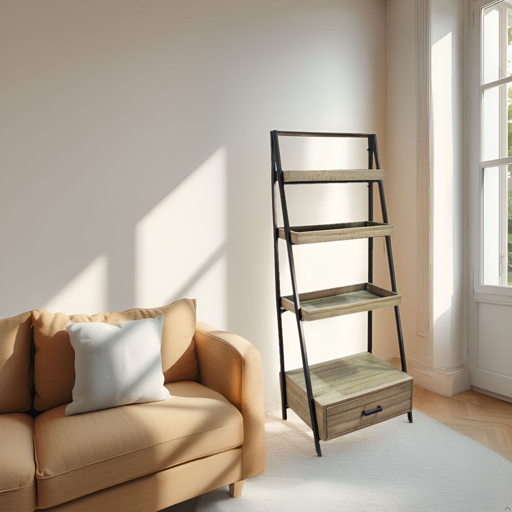 The ladder-inspired structure creates a clean vertical display ideal for books, décor, plants, or everyday essentials. Its folding design allows for easy setup, movement, and storage, making it perfect for apartments, bedrooms, living rooms, or home offices where flexibility matters.