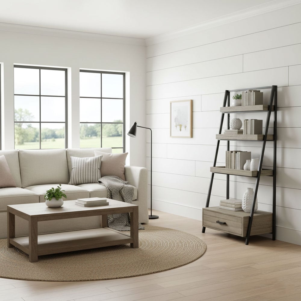 Bring functional elegance to your living space with this folding ladder bookshelf, thoughtfully designed to combine natural warmth with modern industrial style. Crafted with durable acacia wood shelves and supported by a sturdy powder-coated steel frame, this bookshelf offers reliable strength while maintaining a lightweight, space-saving profile.
