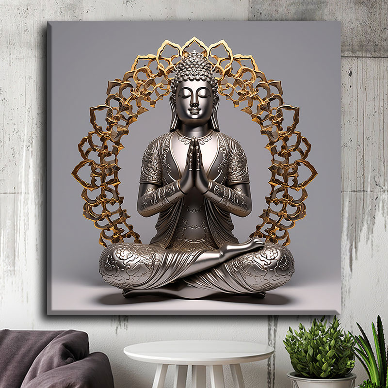 Golden Buddha in Prayer Luxury Metal Wall Art