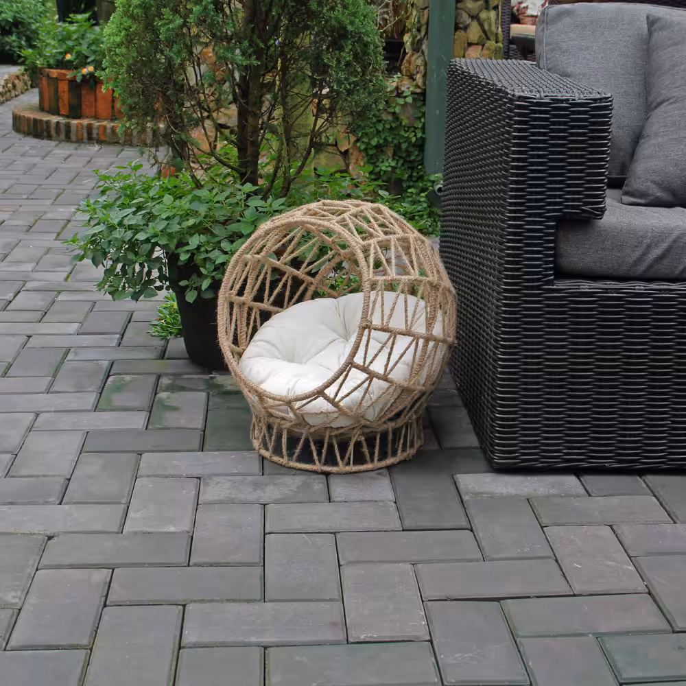 The open cocoon shape provides a secure resting space while maintaining airflow and visibility, helping pets feel calm and relaxed. A plush removable cushion adds soft support for everyday lounging, naps, and quiet sleep. Perfect for indoor living spaces, this cat bed complements contemporary, boho, or natural home interiors while giving your pet a comfortable place of their own.