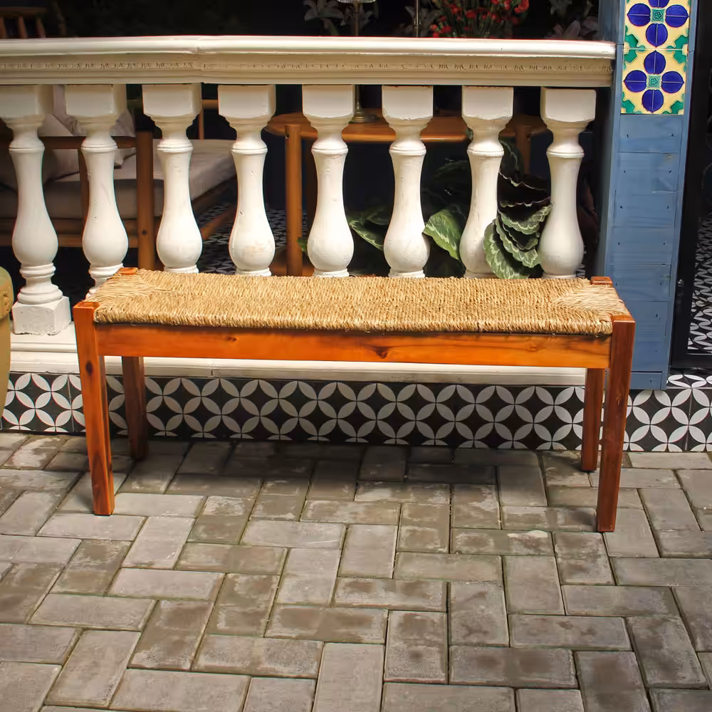 Crafted from solid Acacia wood, this handmade indoor bench showcases natural durability combined with warm, organic character. The seat features hand-twisted natural seagrass weaving, providing breathable comfort and an authentic artisanal texture that enhances rustic, farmhouse, coastal, or minimalist interiors.