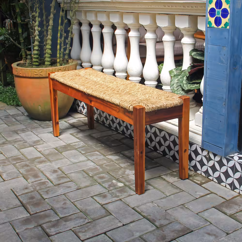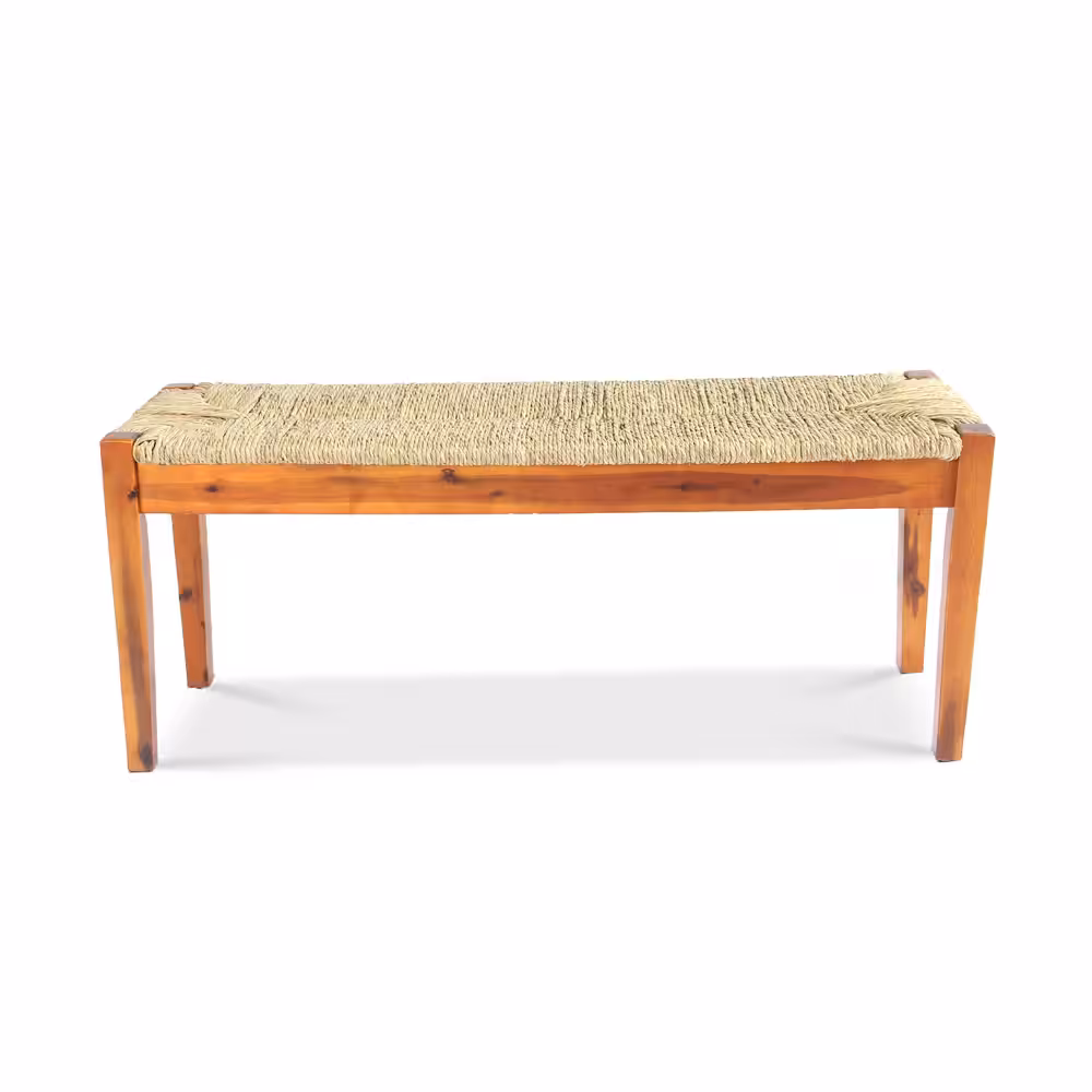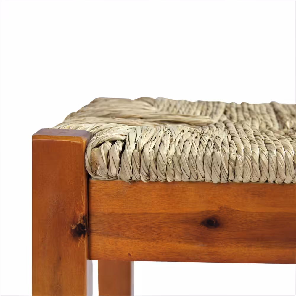Handmade Acacia Wood Indoor Bench with Natural Seagrass Woven Seat