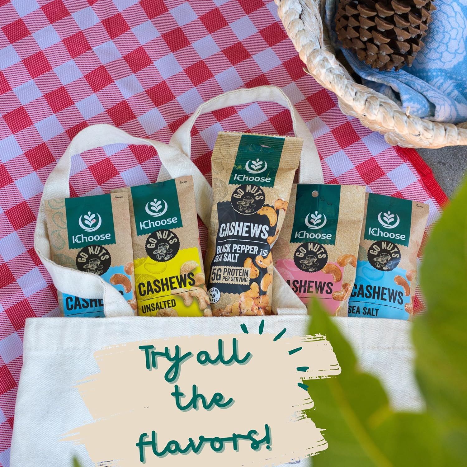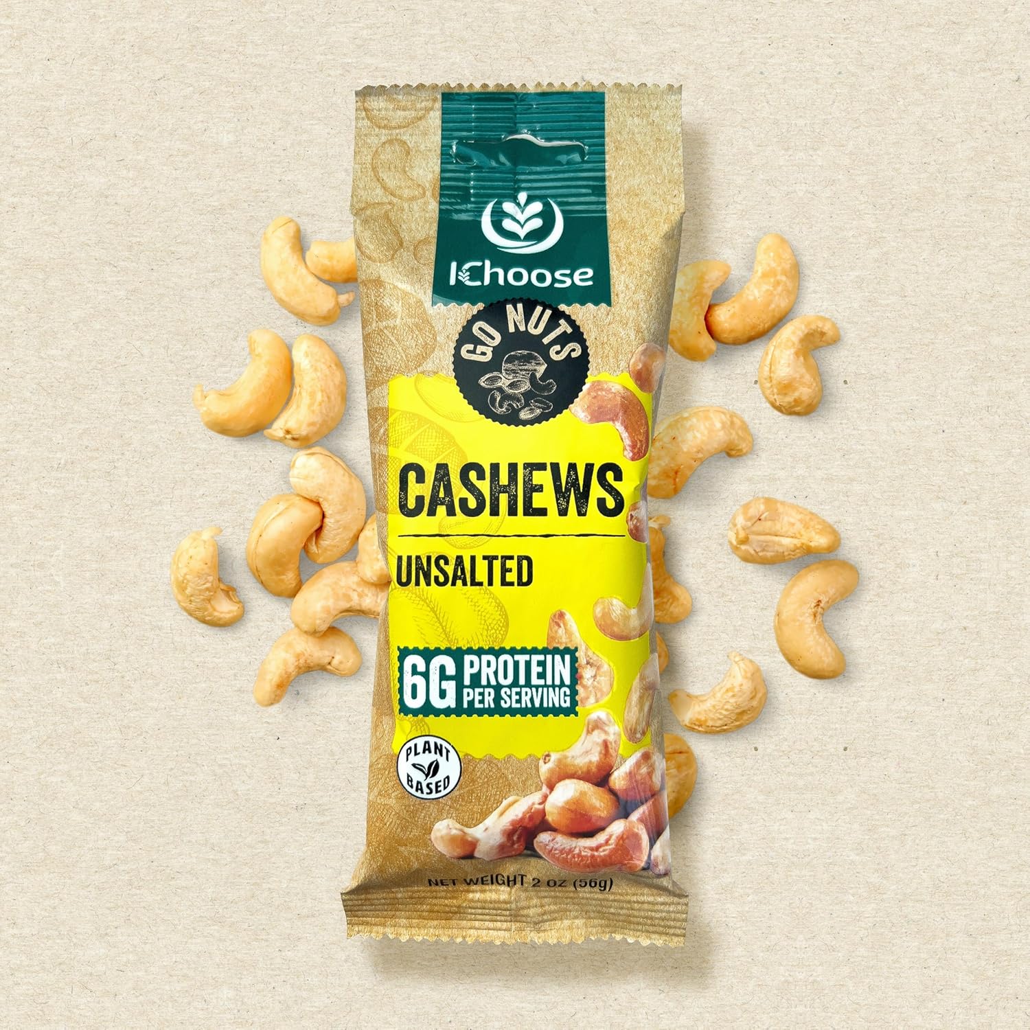 IChoose Go Nuts – Premium Cashews, High Protein Plant-Based Snack, 2 oz per Pack (5 Packs, Unsalted)