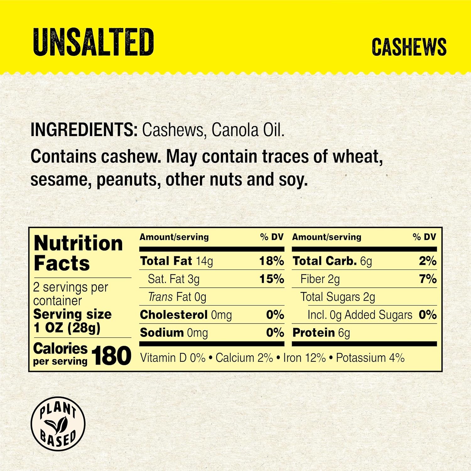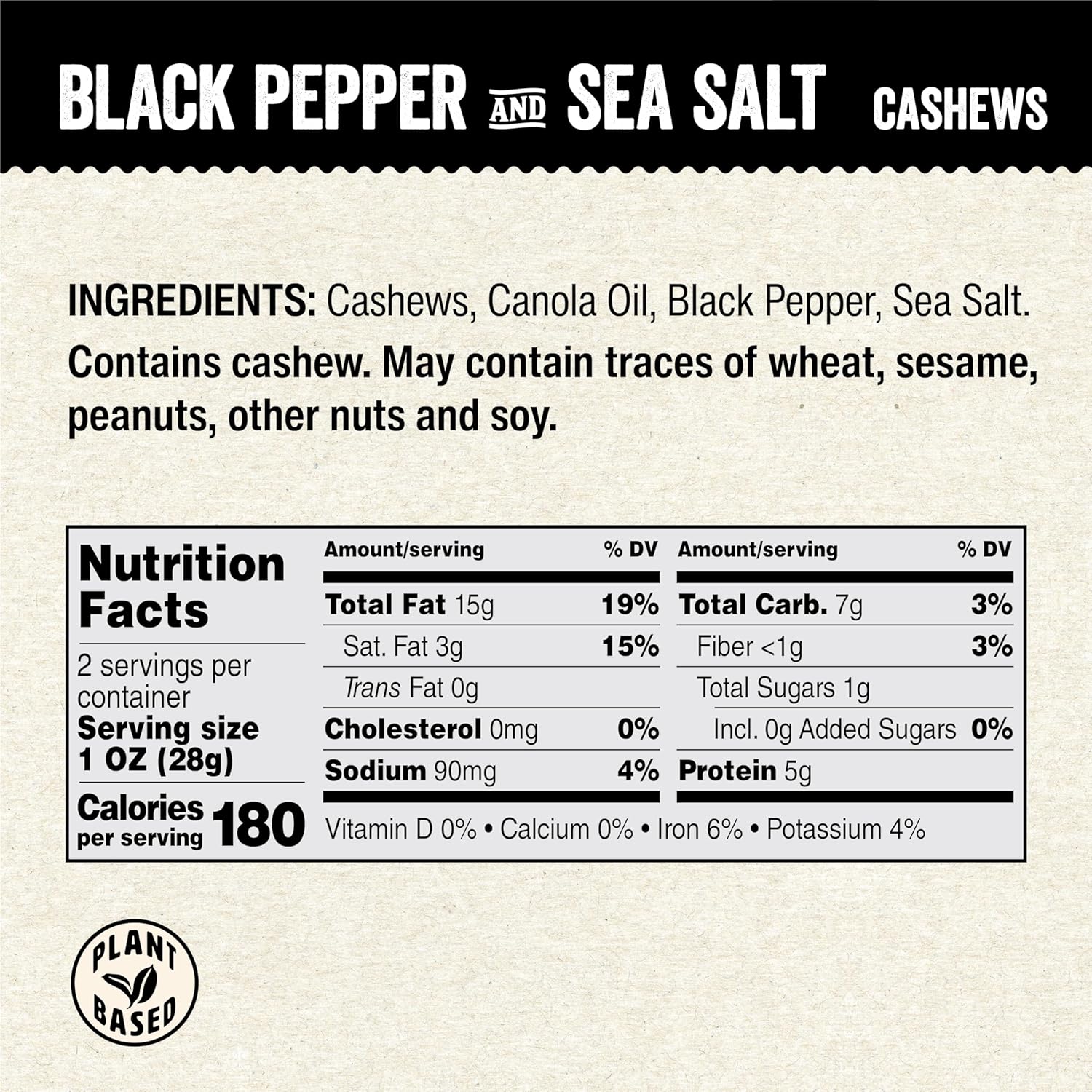 - Simple, Real Ingredients Only 4 ingredients: Cashews, Canola Oil, Black Pepper, Sea Salt. Plant-based, no preservatives, no artificial flavors.