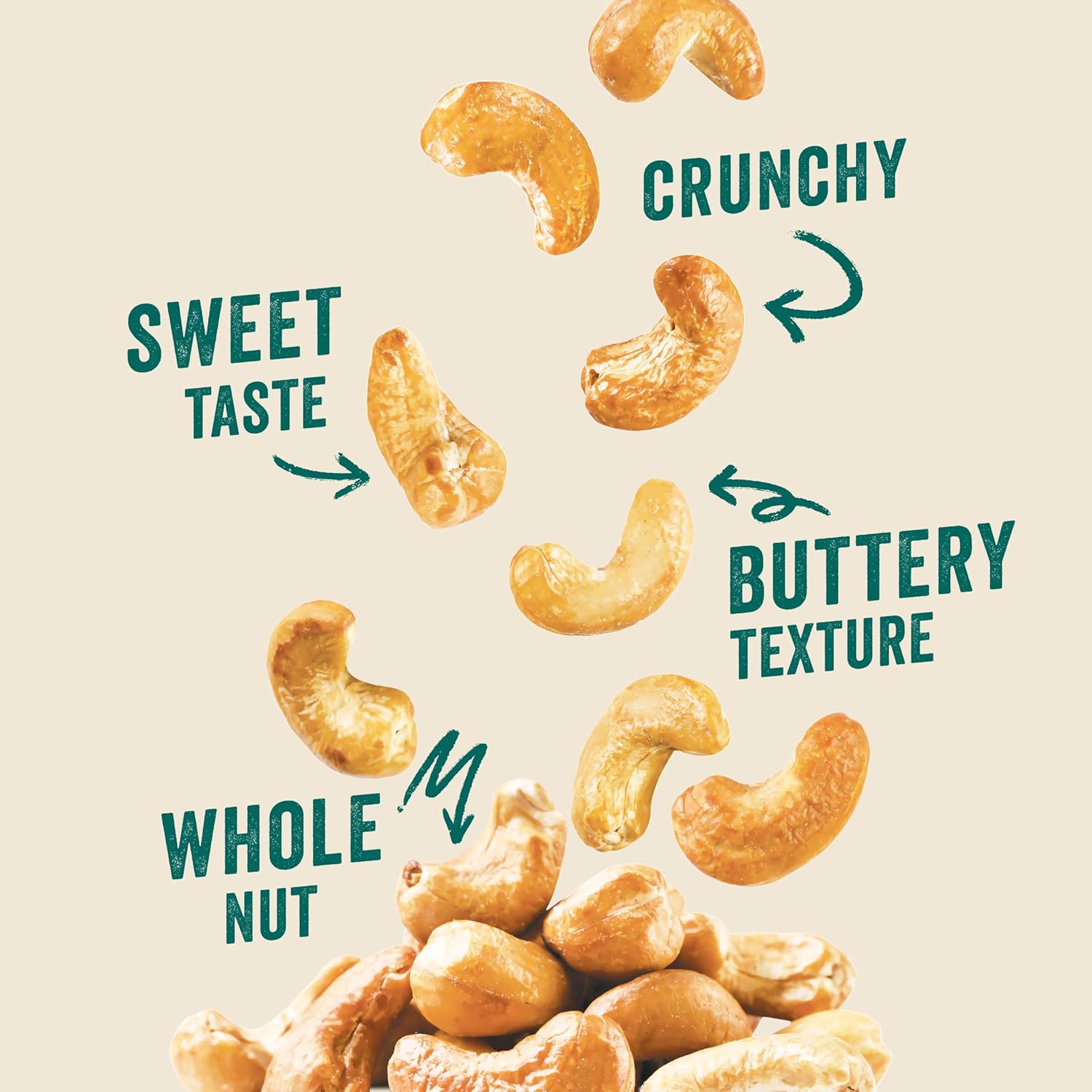 - Whole Premium Cashews Roasted for Extra Crunch Made with large, whole Vietnamese cashews known for their natural sweetness, buttery texture, and satisfying crunch.