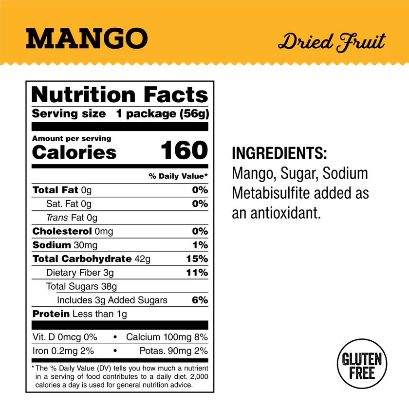 GoFruits Dried Mango is made from real, ripe mangoes, carefully sliced and dried to create a soft, chewy texture and rich tropical sweetness. Lightly sweetened to enhance flavor, it’s a delicious fruit snack that feels indulgent — yet still made from real fruit.