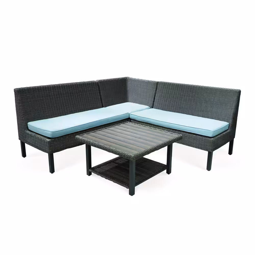L-Shape Patio Conversation Set – Wicker Outdoor Sofa with Coffee Table