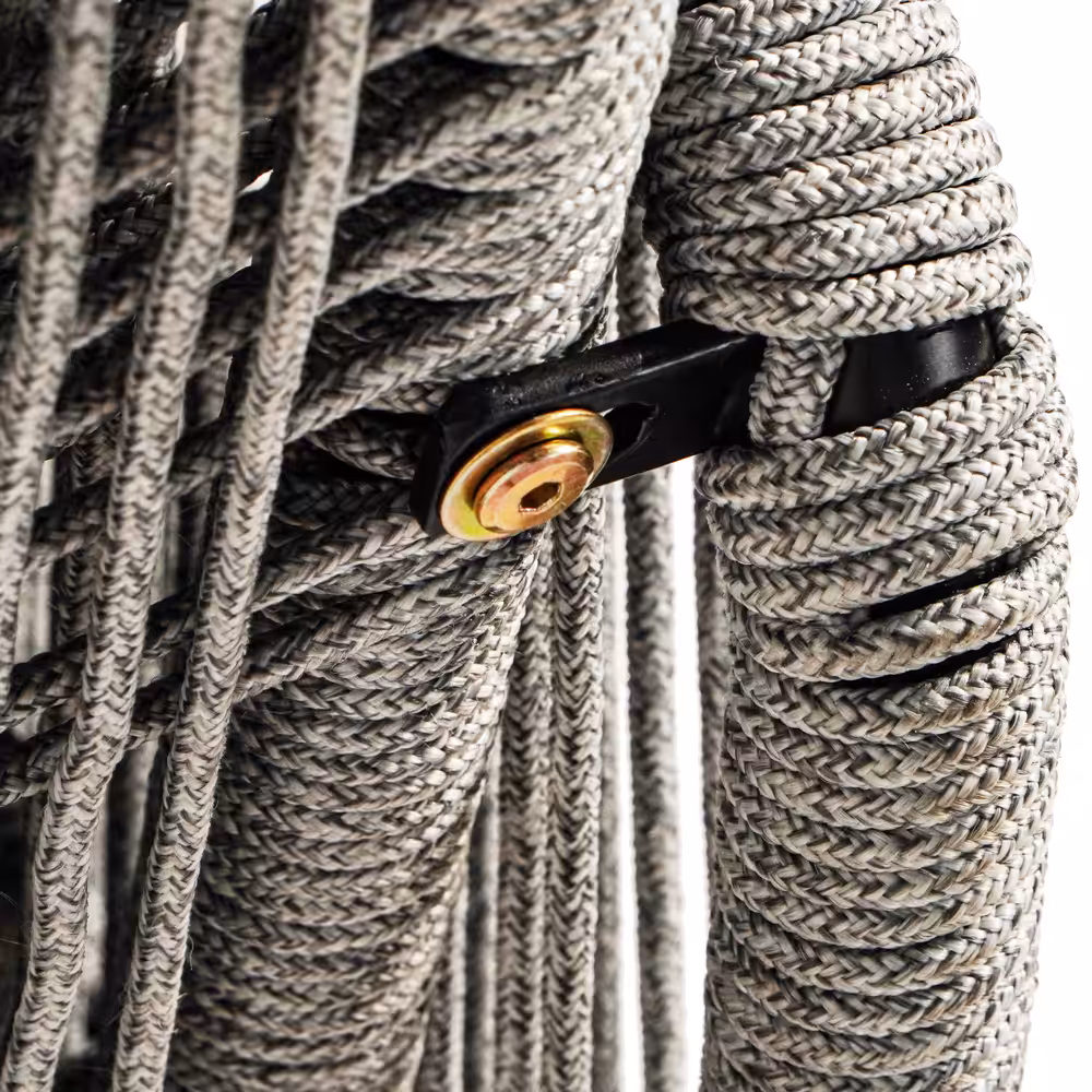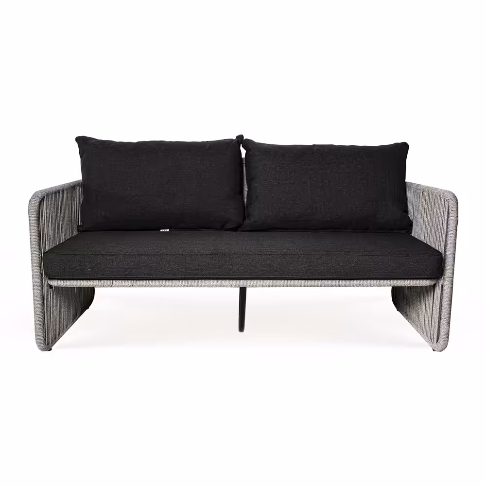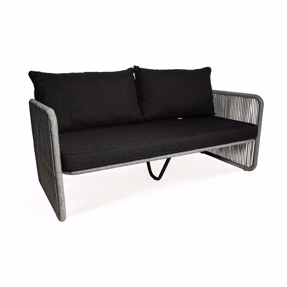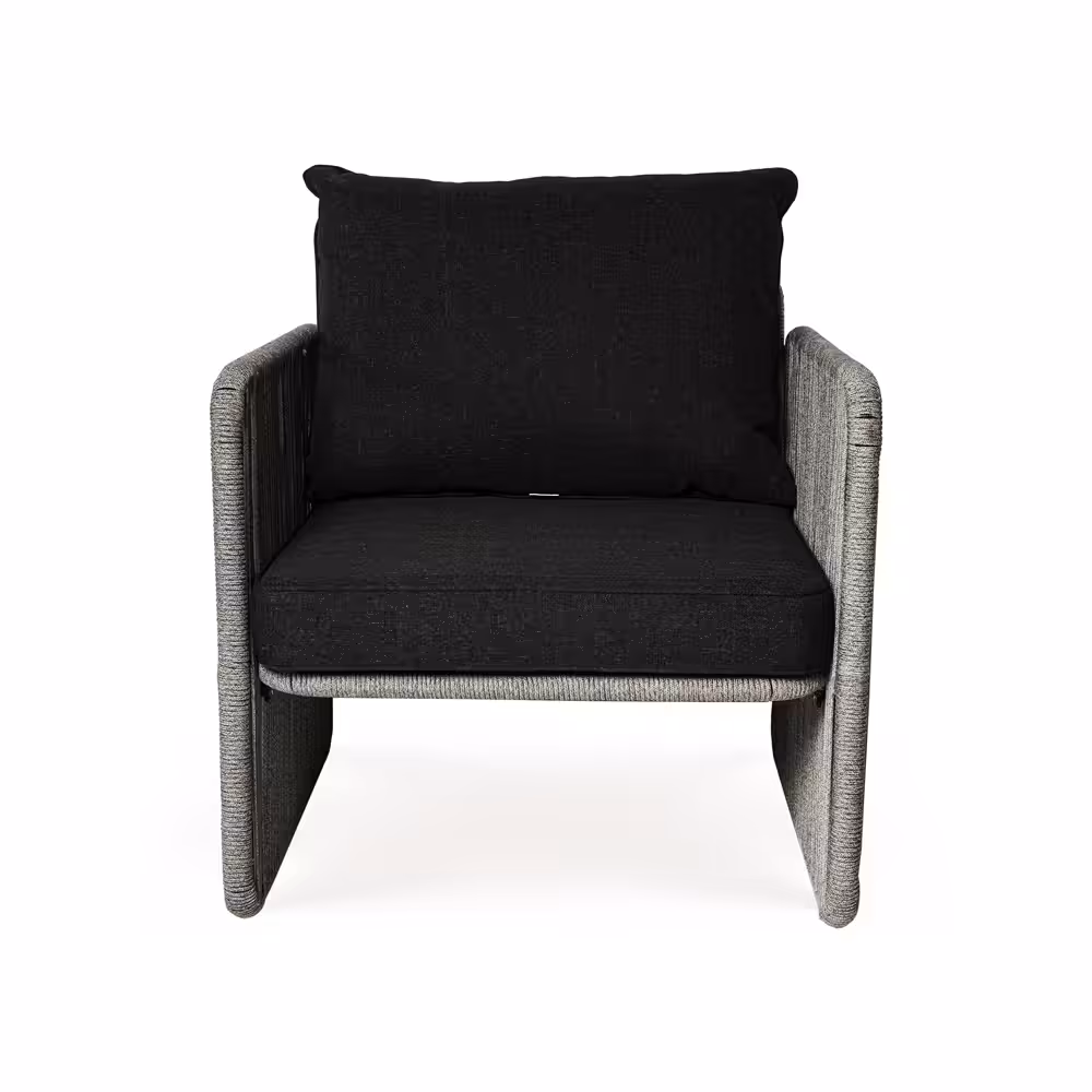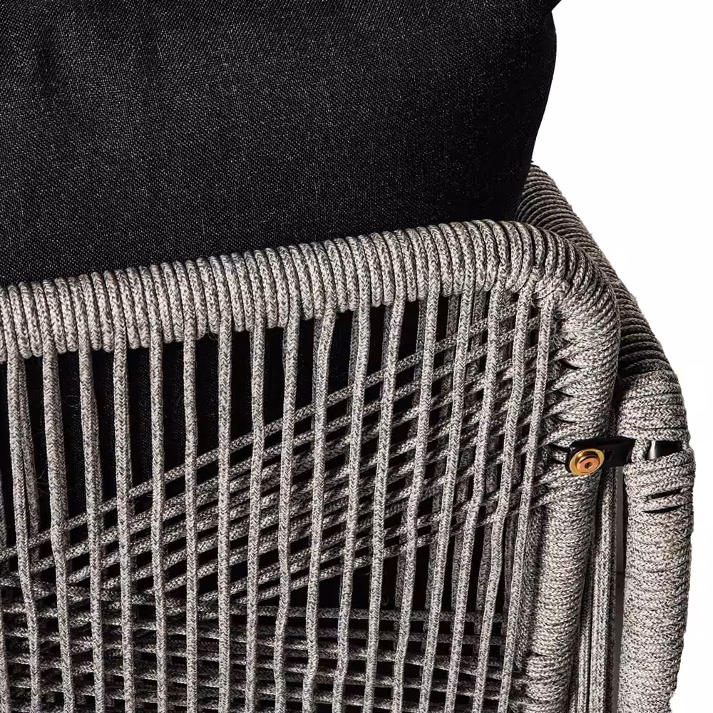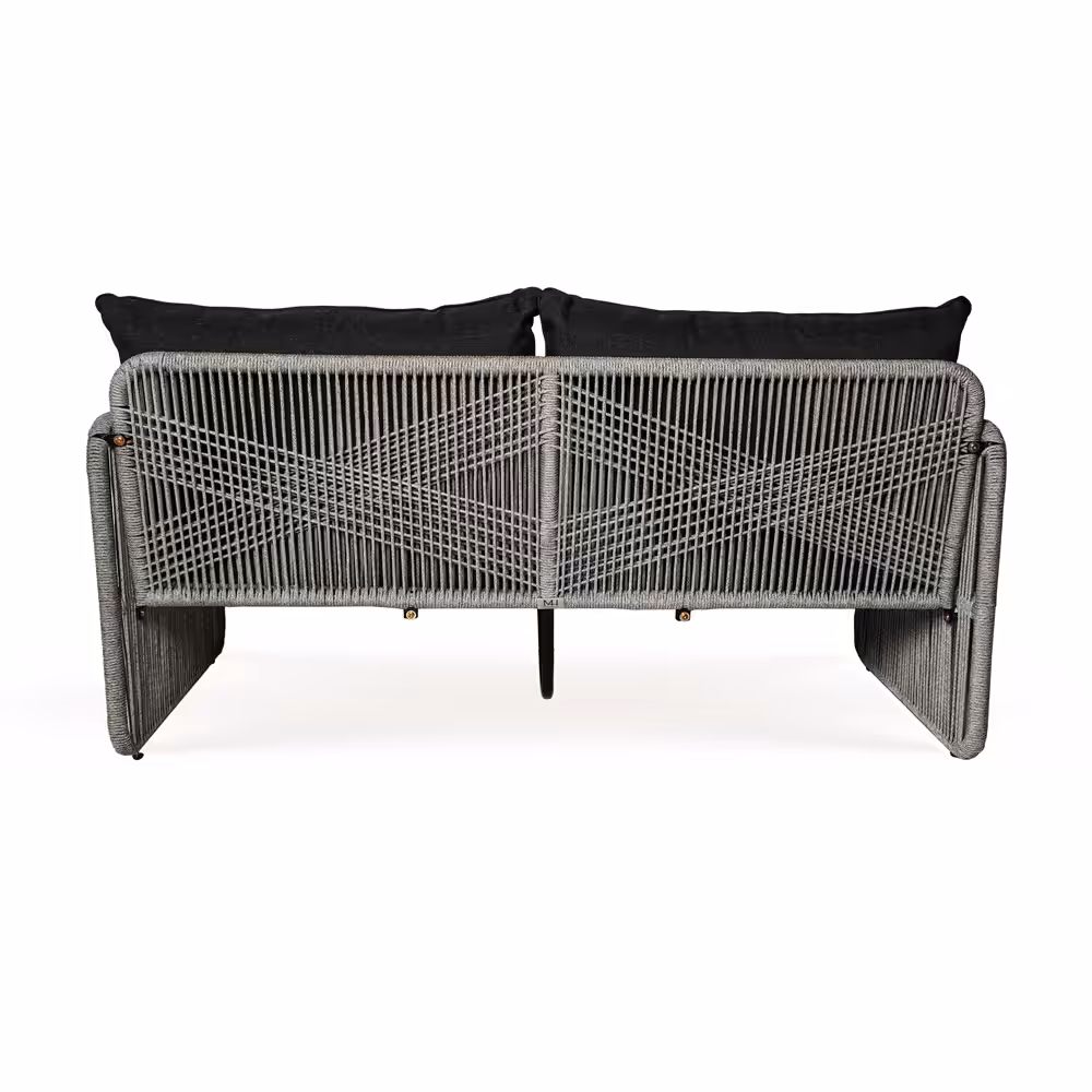 The refined pairing of black powder-coated steel, light grey rope weaving, and warm brown acacia wood brings a soft, architectural look that complements patios, balconies, gardens, and poolside spaces alike.