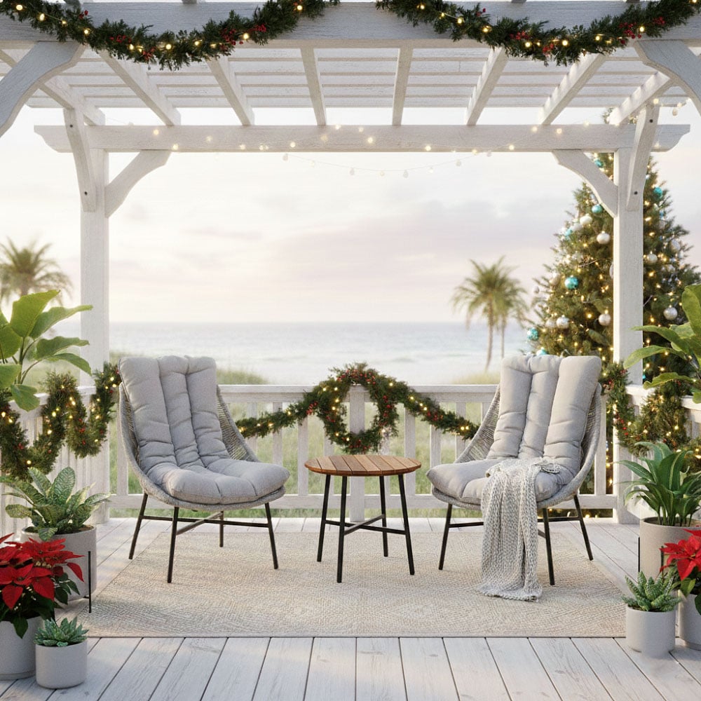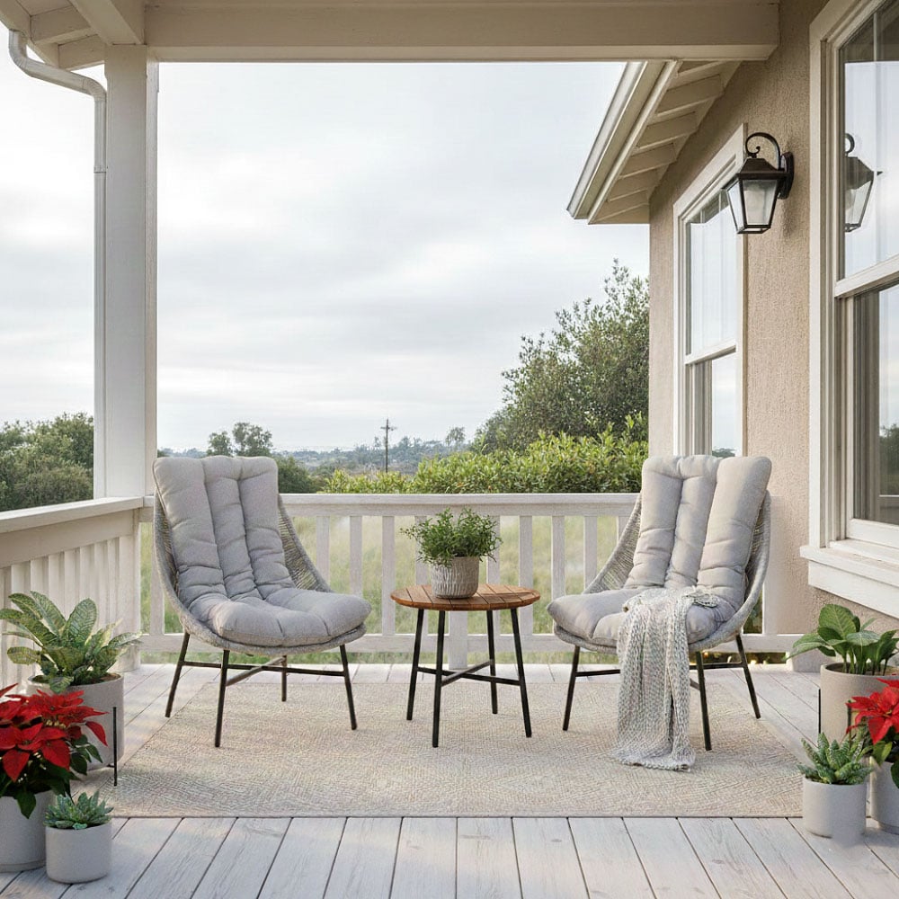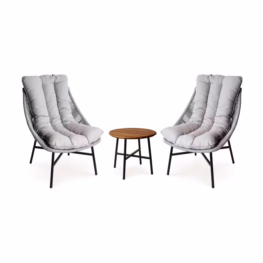 Create a calm and stylish outdoor retreat with this contemporary 3-piece patio bistro set. Designed with a clean architectural frame and soft woven rope seating, this set blends modern aesthetics with everyday durability—perfect for balconies, patios, gardens, or compact outdoor lounges.