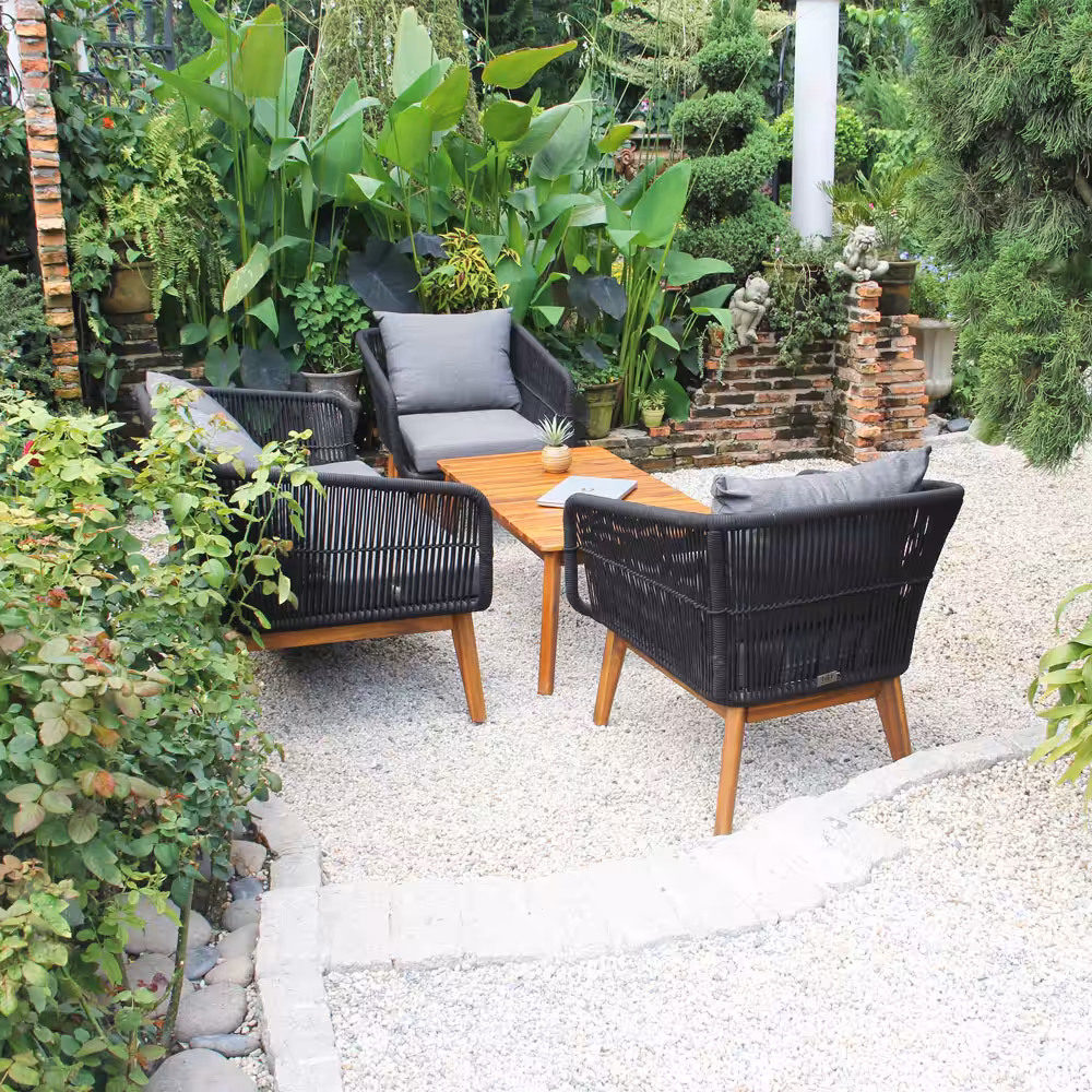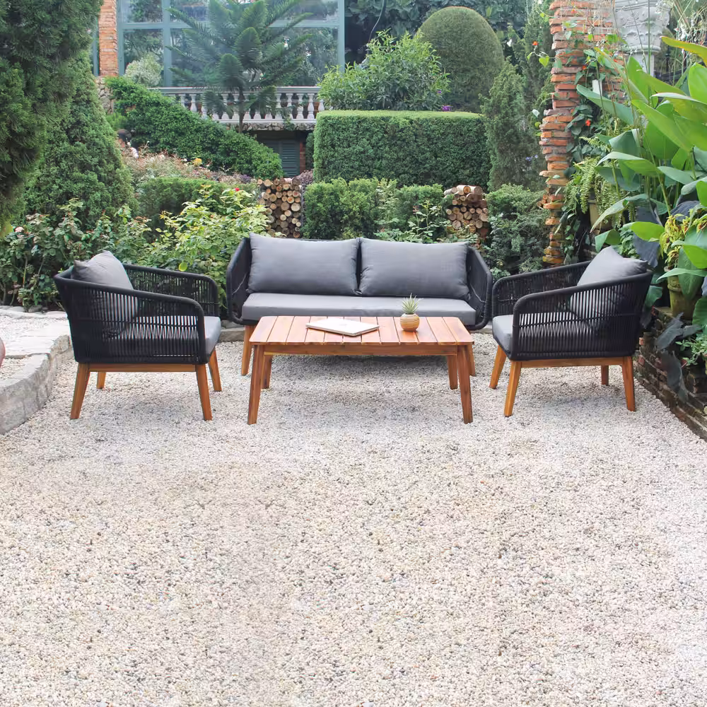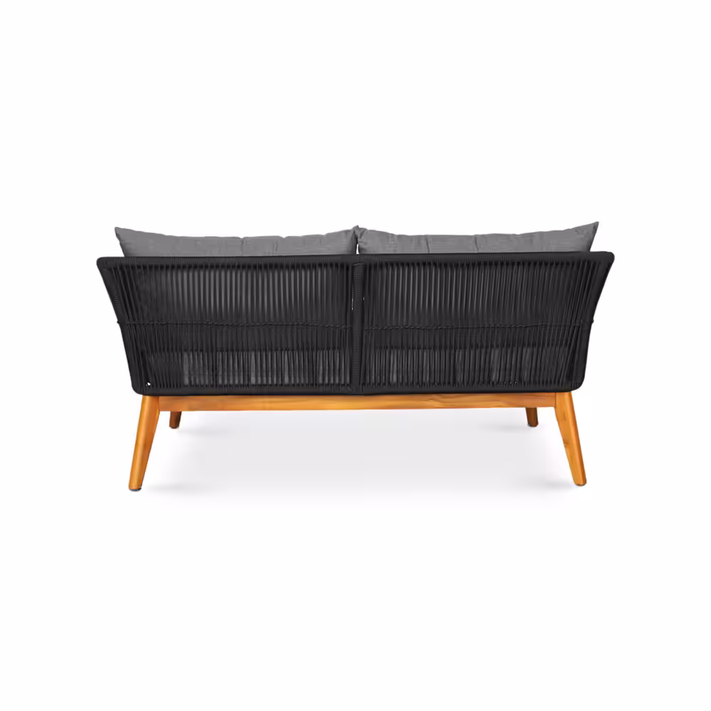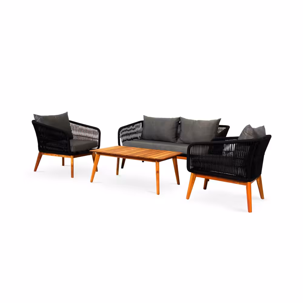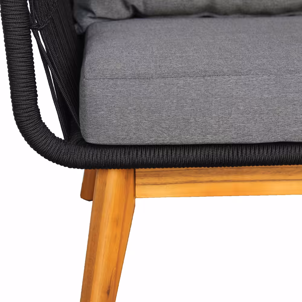 Modern Rope Patio Conversation Set with Acacia Wood Table – Outdoor Bench & Chairs