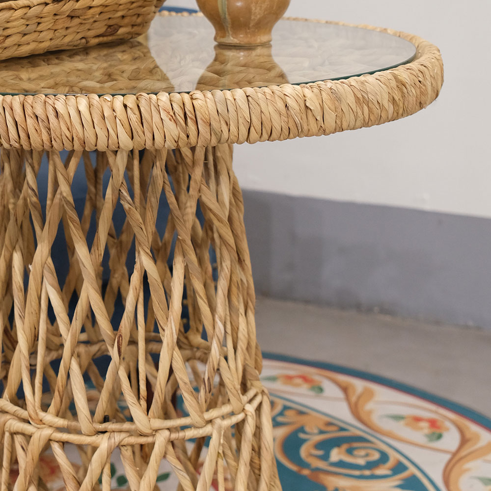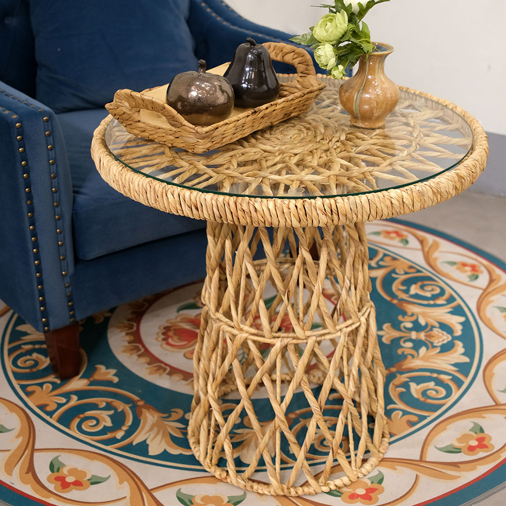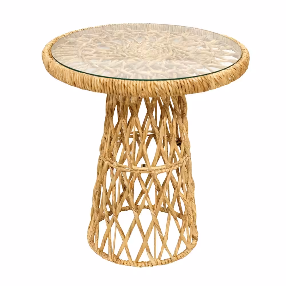 Natural Elegant Circle Glass-Top Accent Table