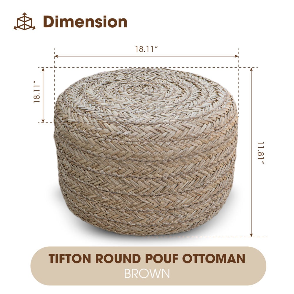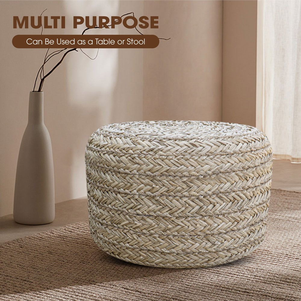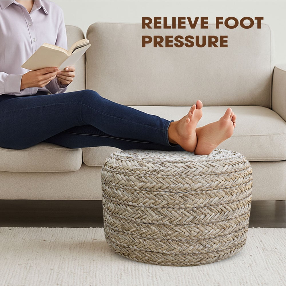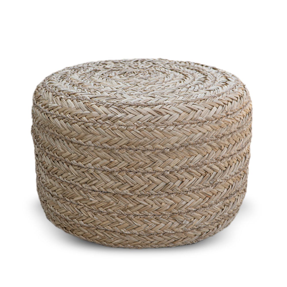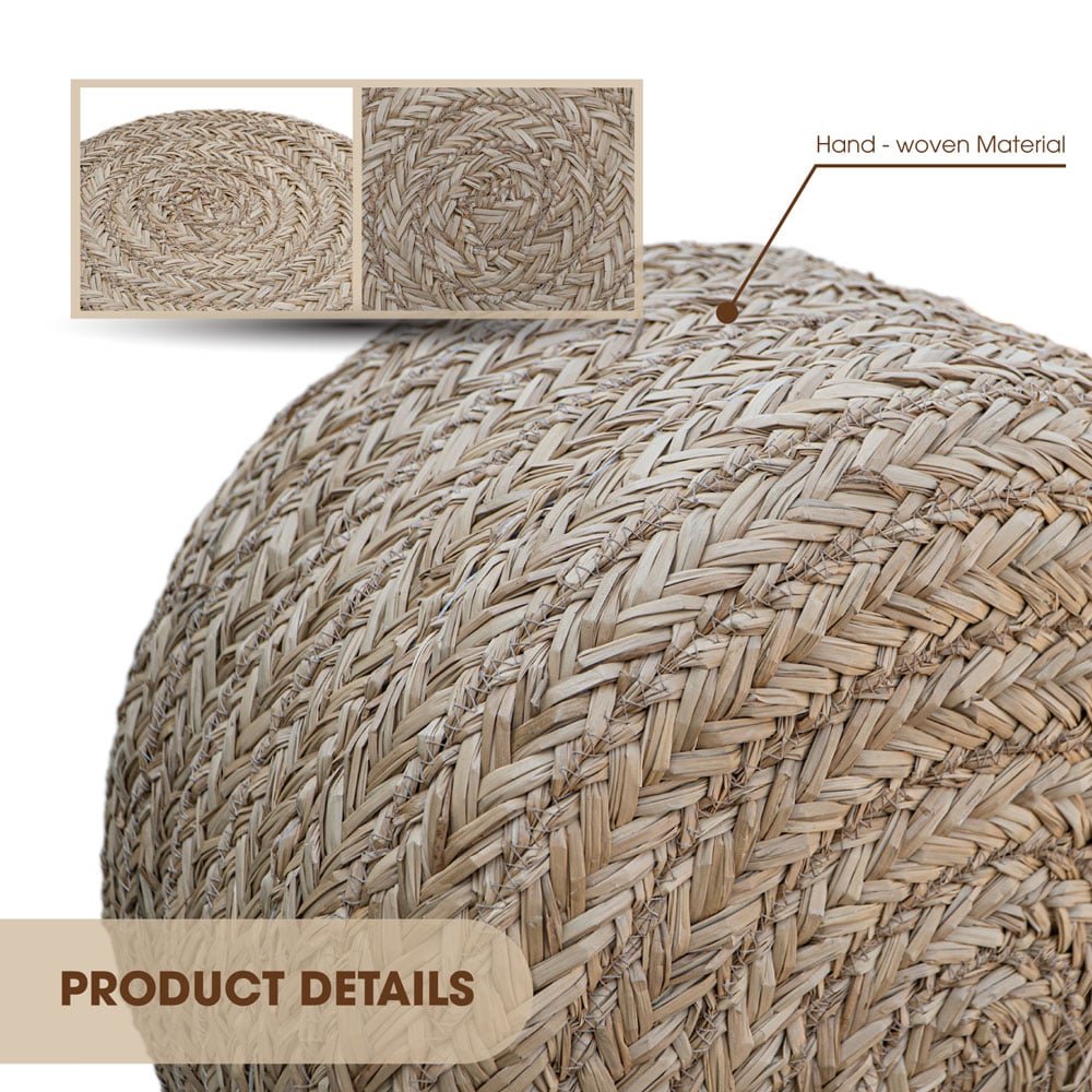 Bring warmth, texture, and organic beauty into your living space with this handcrafted Natural Seagrass Chevron Accent Stool. Expertly woven from durable natural seagrass over a supportive styrofoam core, this round ottoman delivers both comfort and long-lasting structure while maintaining a lightweight design that’s easy to move throughout your home.