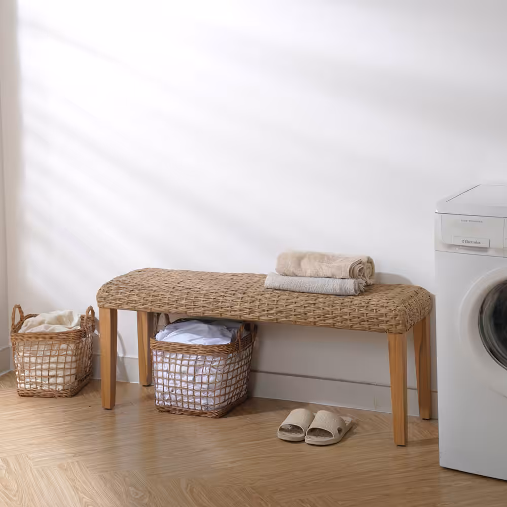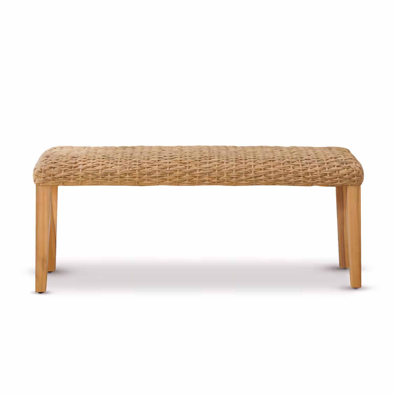 Create a relaxed and natural outdoor atmosphere with this beautifully crafted patio bench made from handmade acacia solid wood and durable PE wicker weaving. Designed for both comfort and durability, the bench features a quick-dry foam seat that resists moisture and maintains its shape, making it ideal for poolside lounging, patios, balconies, or garden spaces.