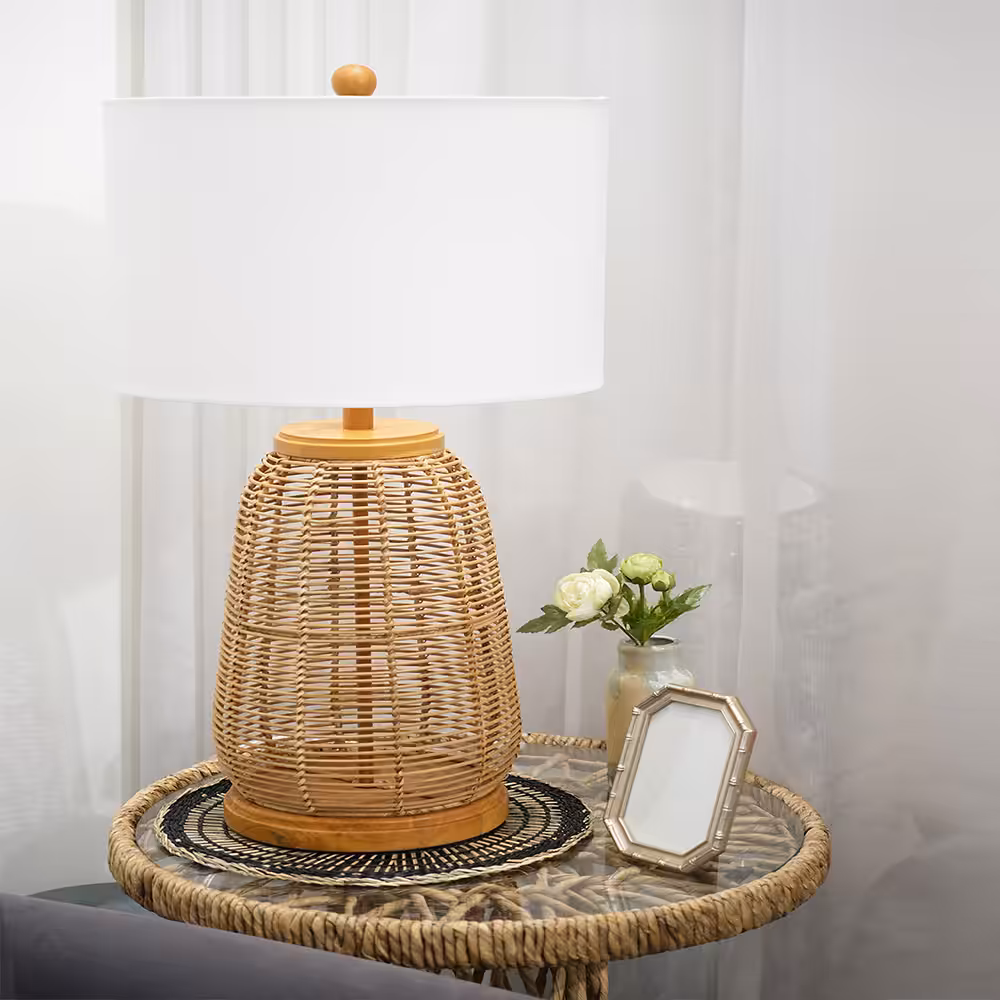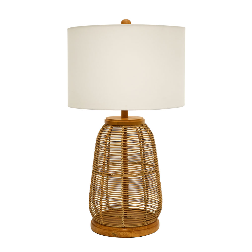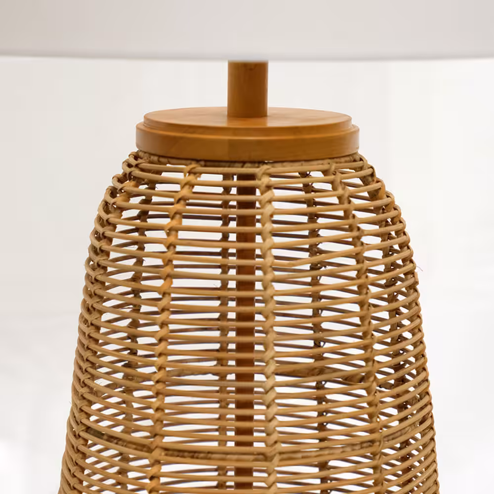 Radiant Rattan Honey Base Table Lamp with White Premium Fabric Shape