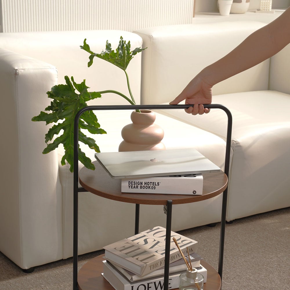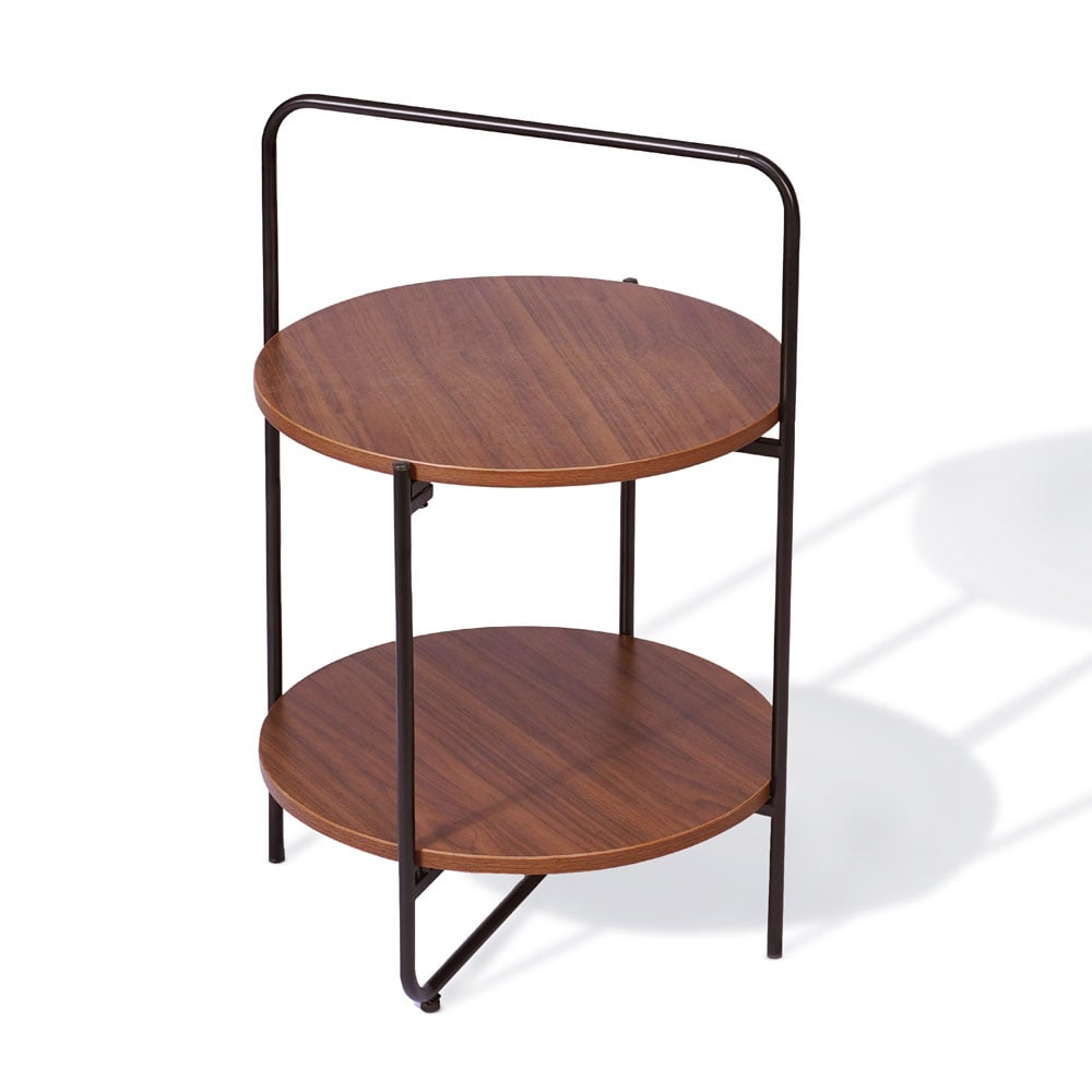 Round 2-Tier End & Brown Side Table with Foldable Steel Frame and MDF Shelves