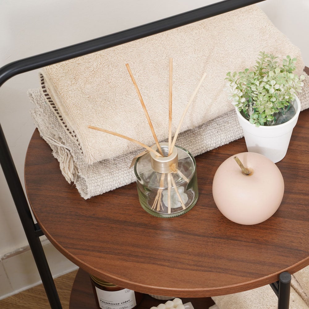 Upgrade your living space with this modern round end and side table, designed with a sturdy foldable steel frame and smooth MDF shelving for everyday convenience. The two-tier circular design provides practical storage for books, décor, or bedside essentials while maintaining a clean, minimalist appearance that blends effortlessly into contemporary, Scandinavian, or modern interiors.
