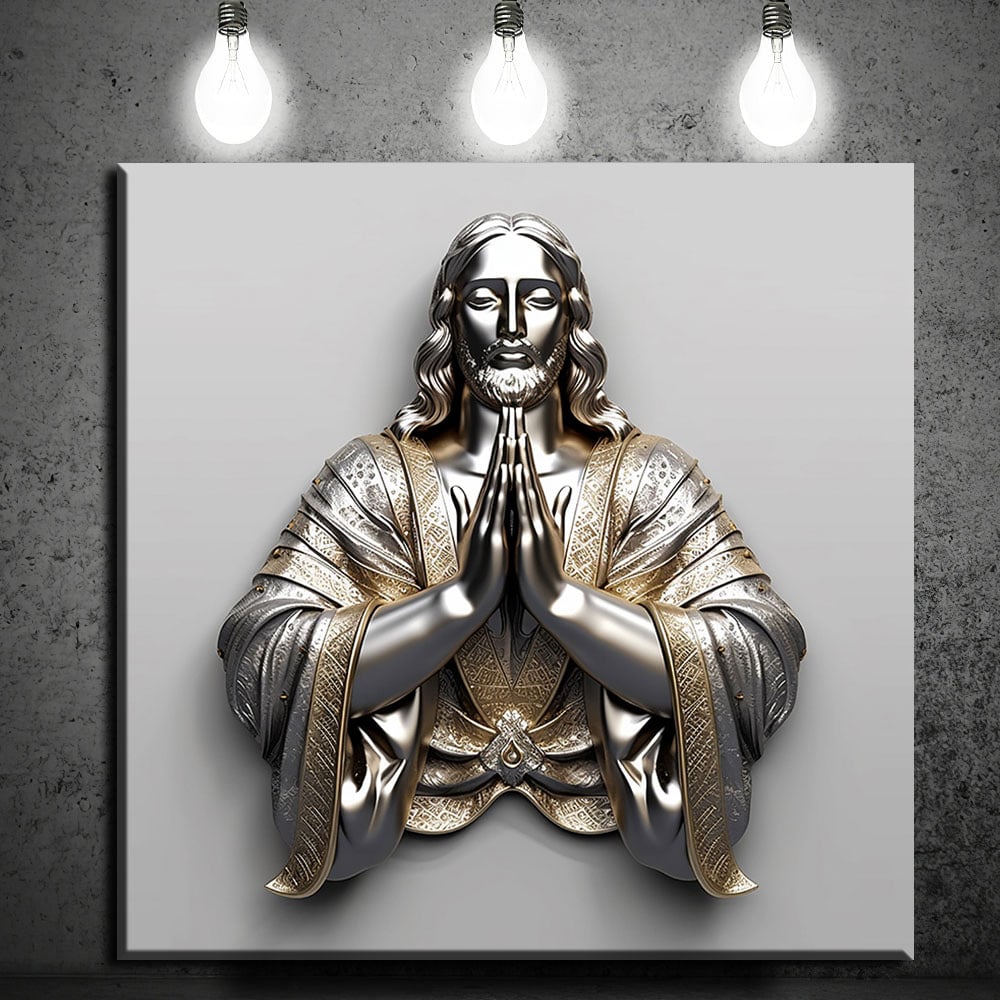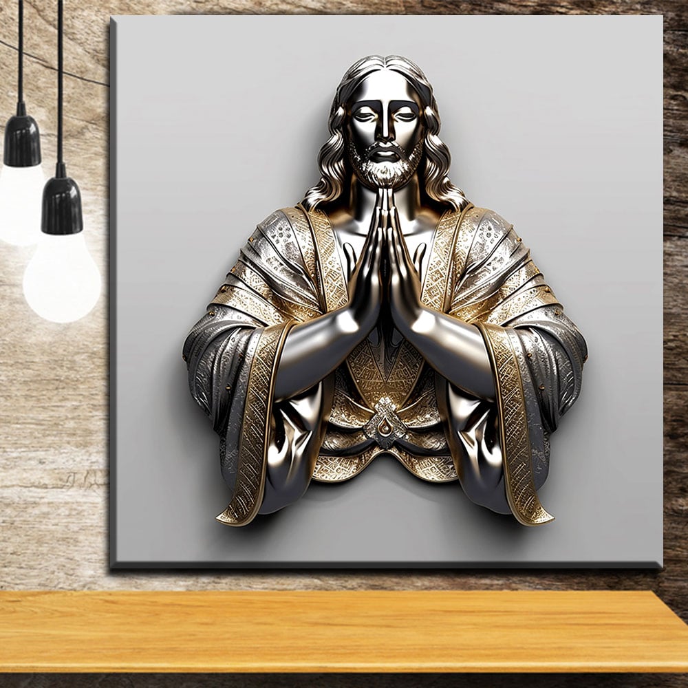 Sacred Jesus in Prayer Gold Metal Wall Art