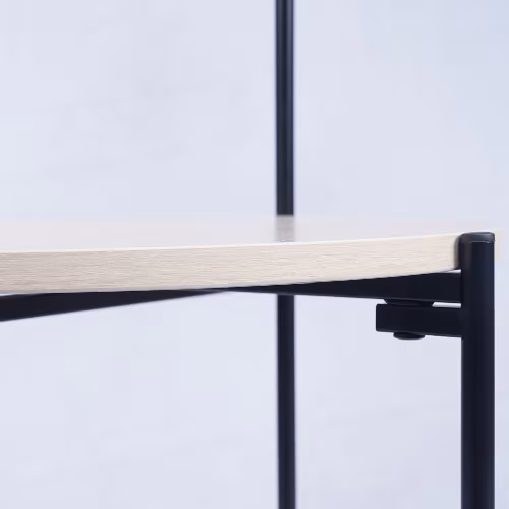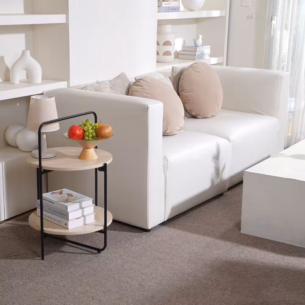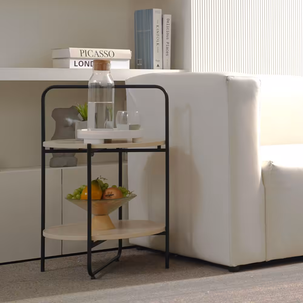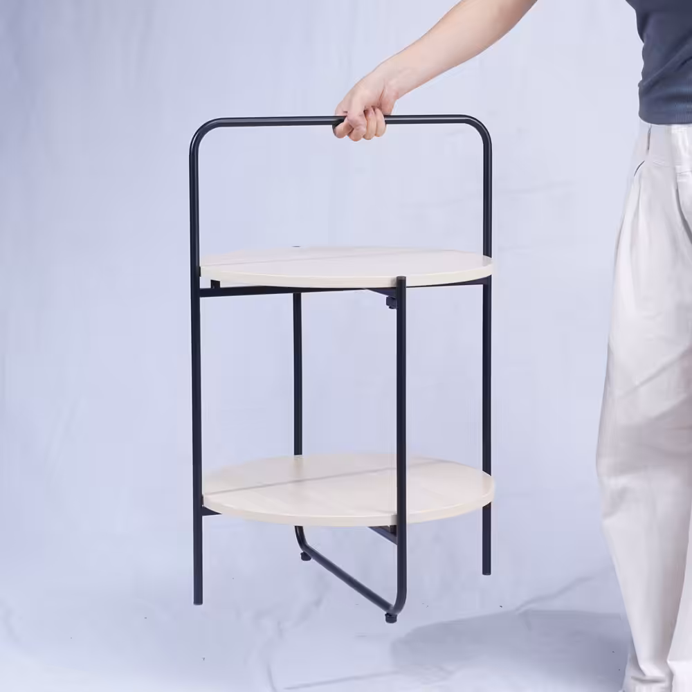Upgrade your living space with this modern round end and side table, designed with a sturdy foldable steel frame and smooth MDF shelving for everyday convenience. The two-tier circular design provides practical storage for books, décor, or bedside essentials while maintaining a clean, minimalist appearance that blends effortlessly into contemporary, Scandinavian, or modern interiors.