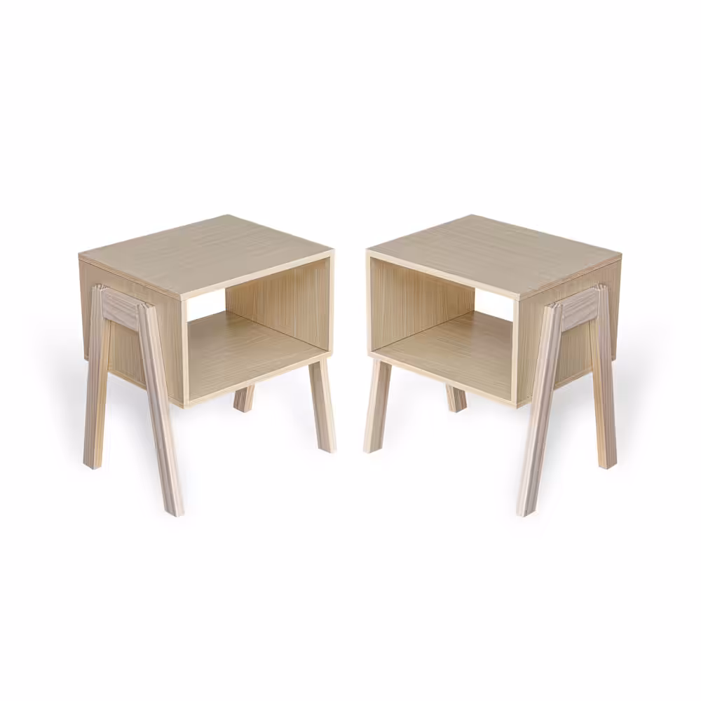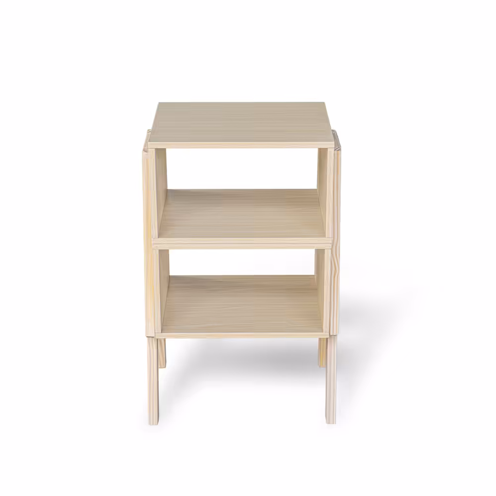 Crafted from melamine-covered particle board paired with solid pine wood legs, these tables deliver dependable stability with a clean, contemporary finish that blends seamlessly into bedrooms, living rooms, or small apartments. The blank back design allows flexible placement against walls or beside beds, while the open shelving keeps essentials neatly organized and within reach.