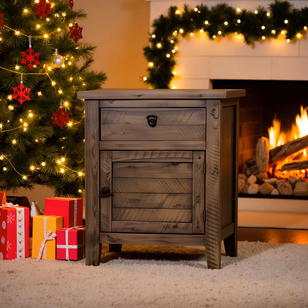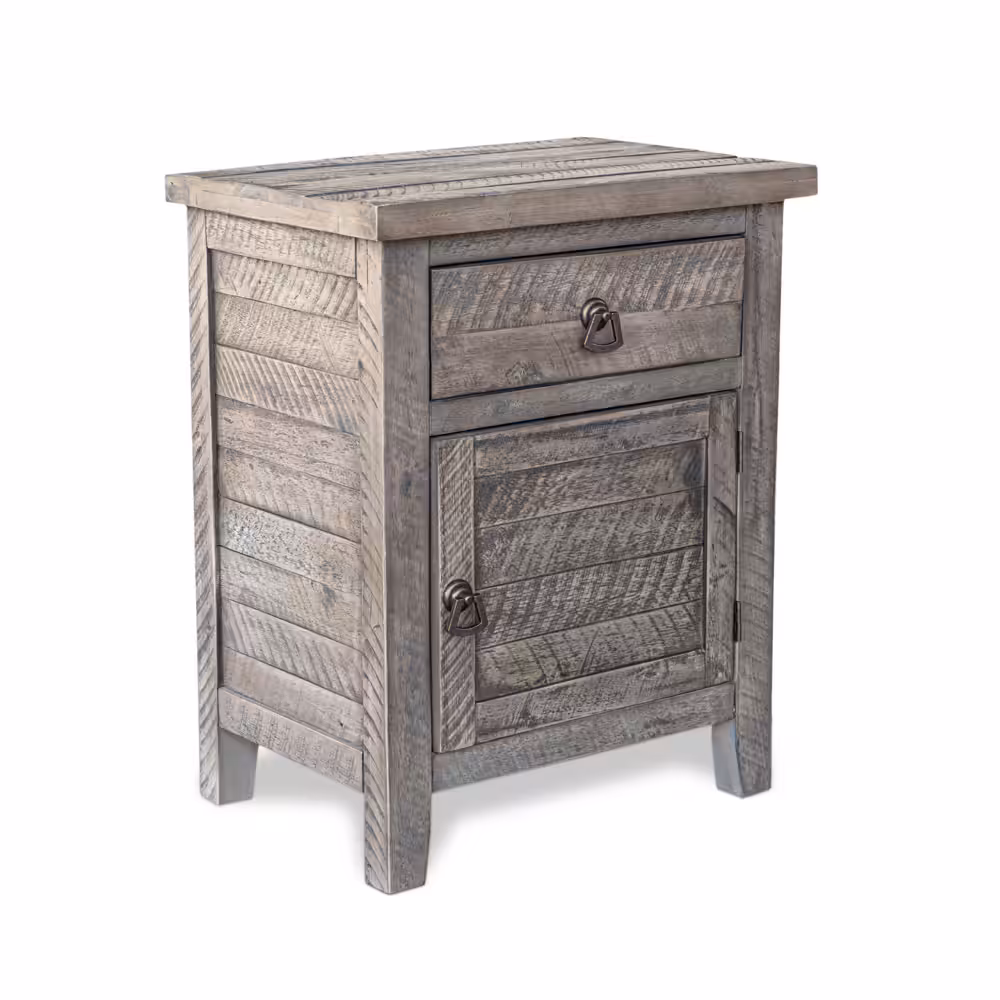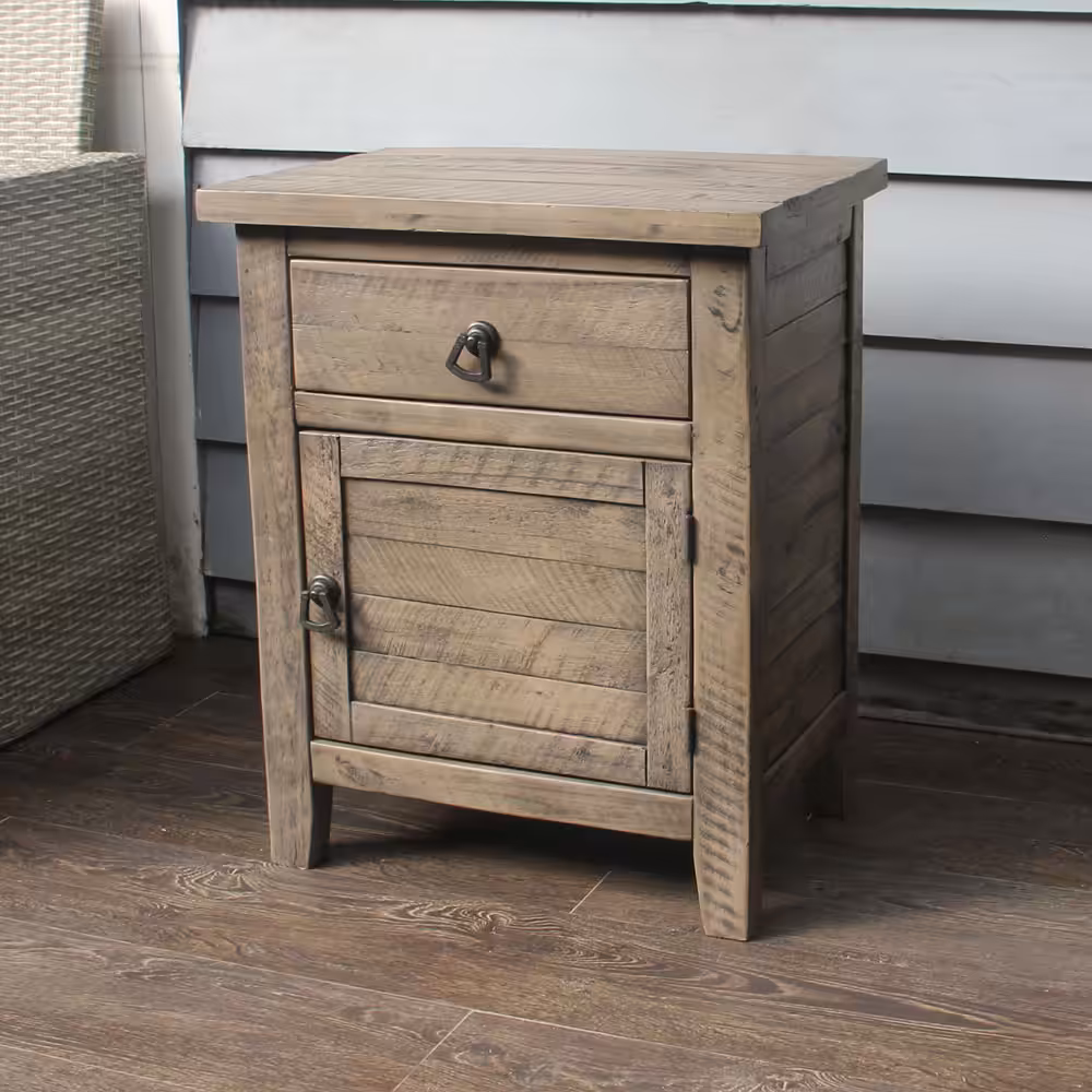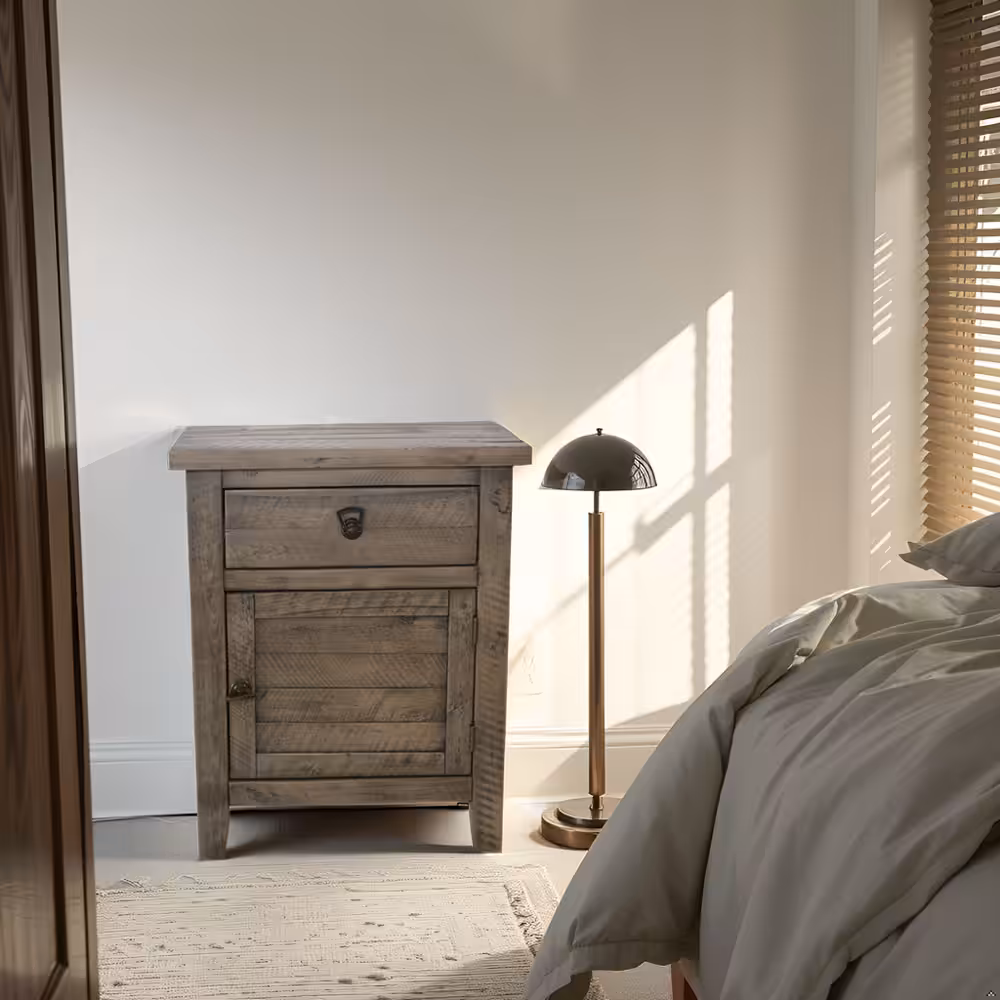 Bring warmth, durability, and timeless craftsmanship to your bedroom with this solid acacia wood nightstand in a rich rustic gray finish. Designed with a balanced combination of one smooth-gliding drawer and a spacious cabinet door, this bedside table provides practical storage while enhancing natural interior aesthetics.
