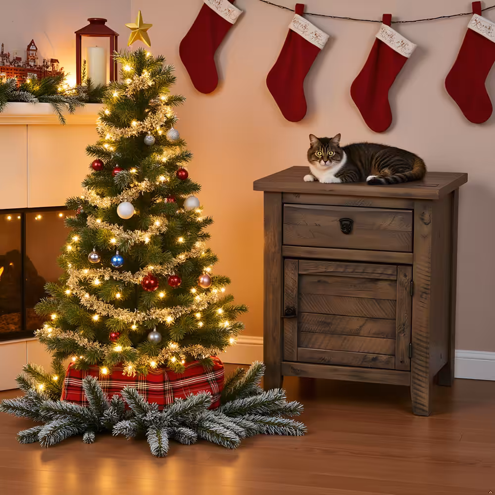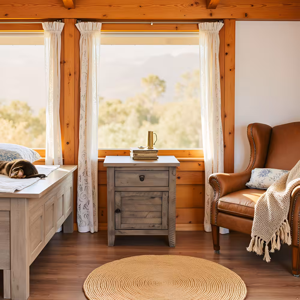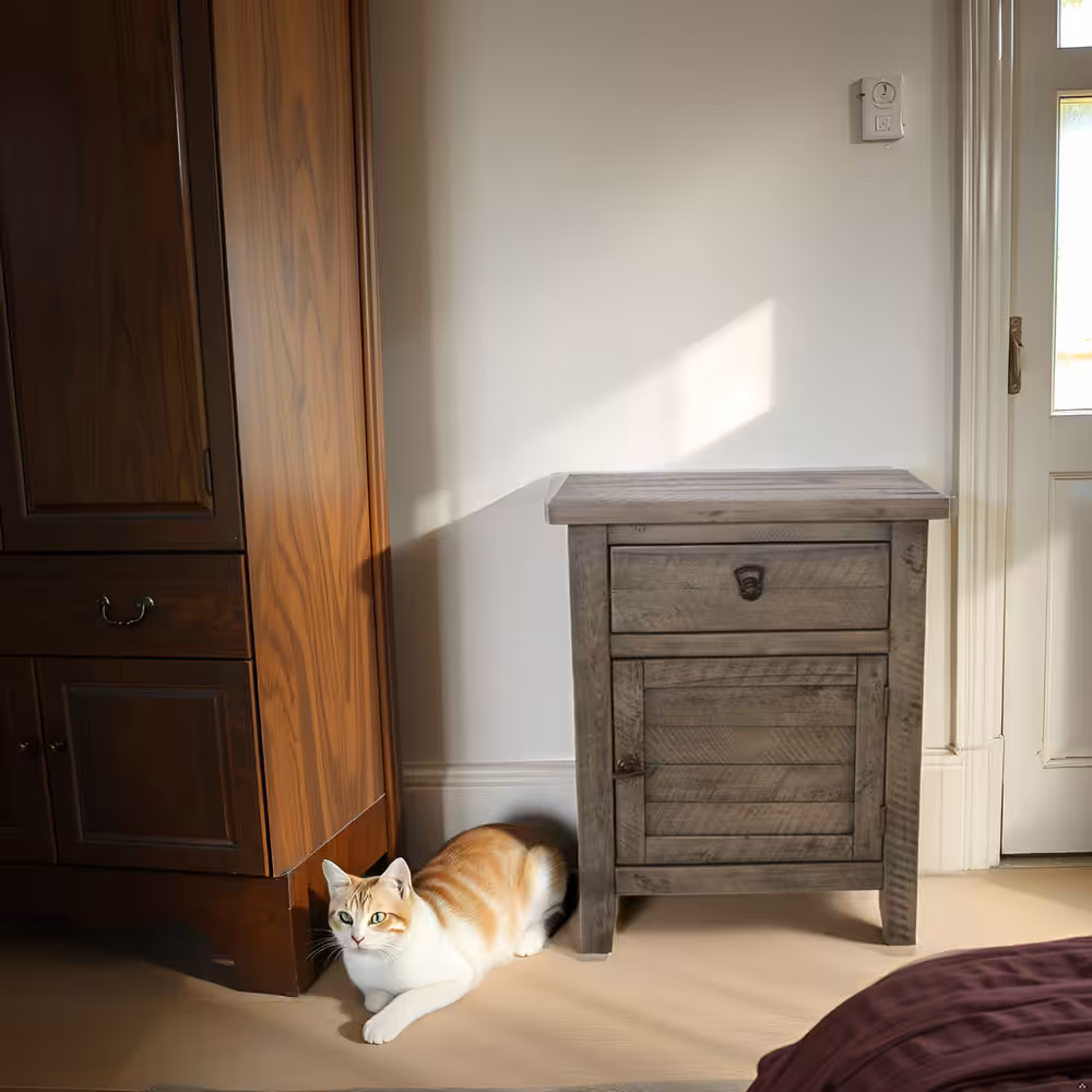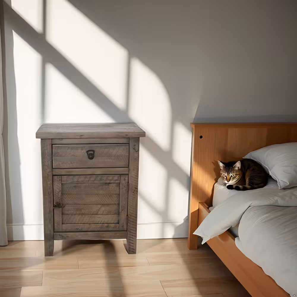 Bring warmth, durability, and timeless craftsmanship to your bedroom with this solid acacia wood nightstand in a rich rustic gray finish. Designed with a balanced combination of one smooth-gliding drawer and a spacious cabinet door, this bedside table provides practical storage while enhancing natural interior aesthetics.