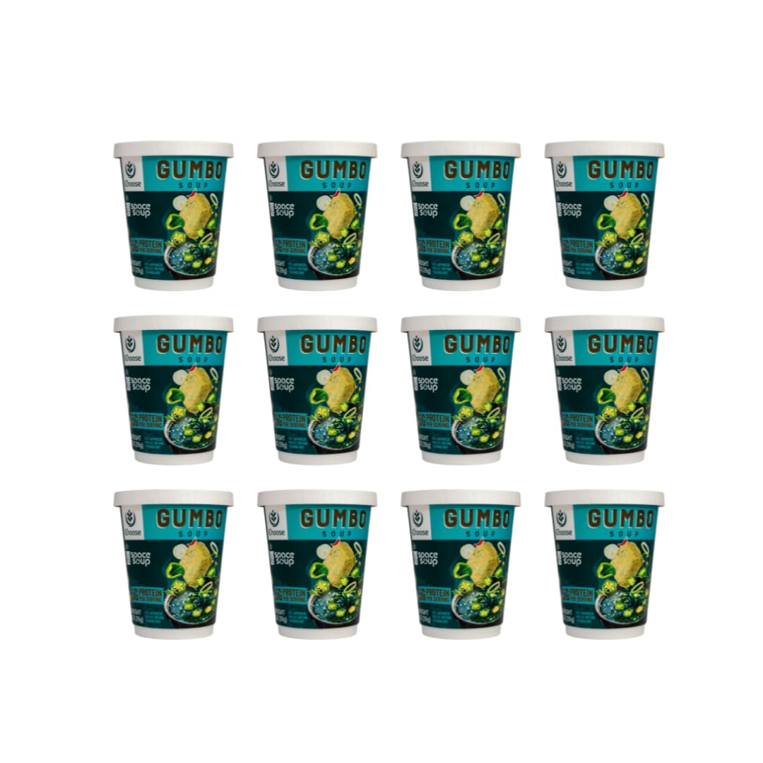 Space Soup – Plant-Based Instant Soup, Box of 12 Cups, Vegan, Ready in Minutes (Box of 12 Cups, Gumbo)