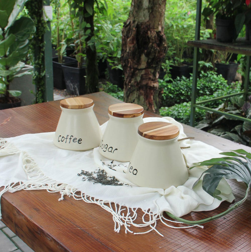 Organize your kitchen in style with this beautifully crafted stoneware kitchen canister set featuring natural acacia wood lids. Designed for everyday convenience and timeless appeal, each jar is perfectly sized to store sugar, tea, and coffee, helping keep your essentials fresh while enhancing your countertop décor.
