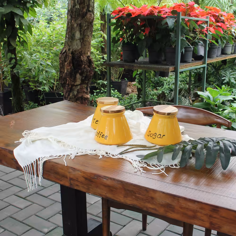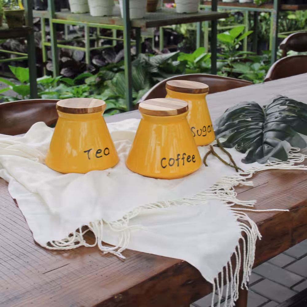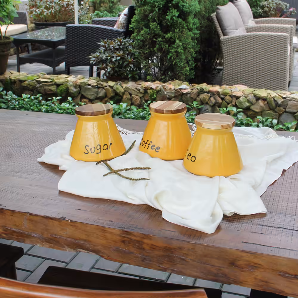 Organize your kitchen in style with this beautifully crafted stoneware kitchen canister set featuring natural acacia wood lids. Designed for everyday convenience and timeless appeal, each jar is perfectly sized to store sugar, tea, and coffee, helping keep your essentials fresh while enhancing your countertop décor.