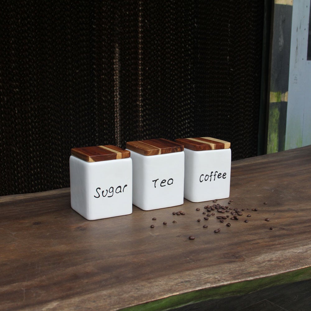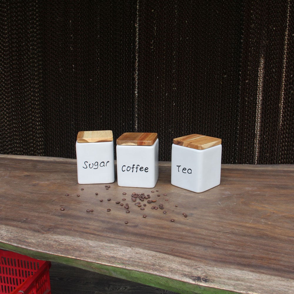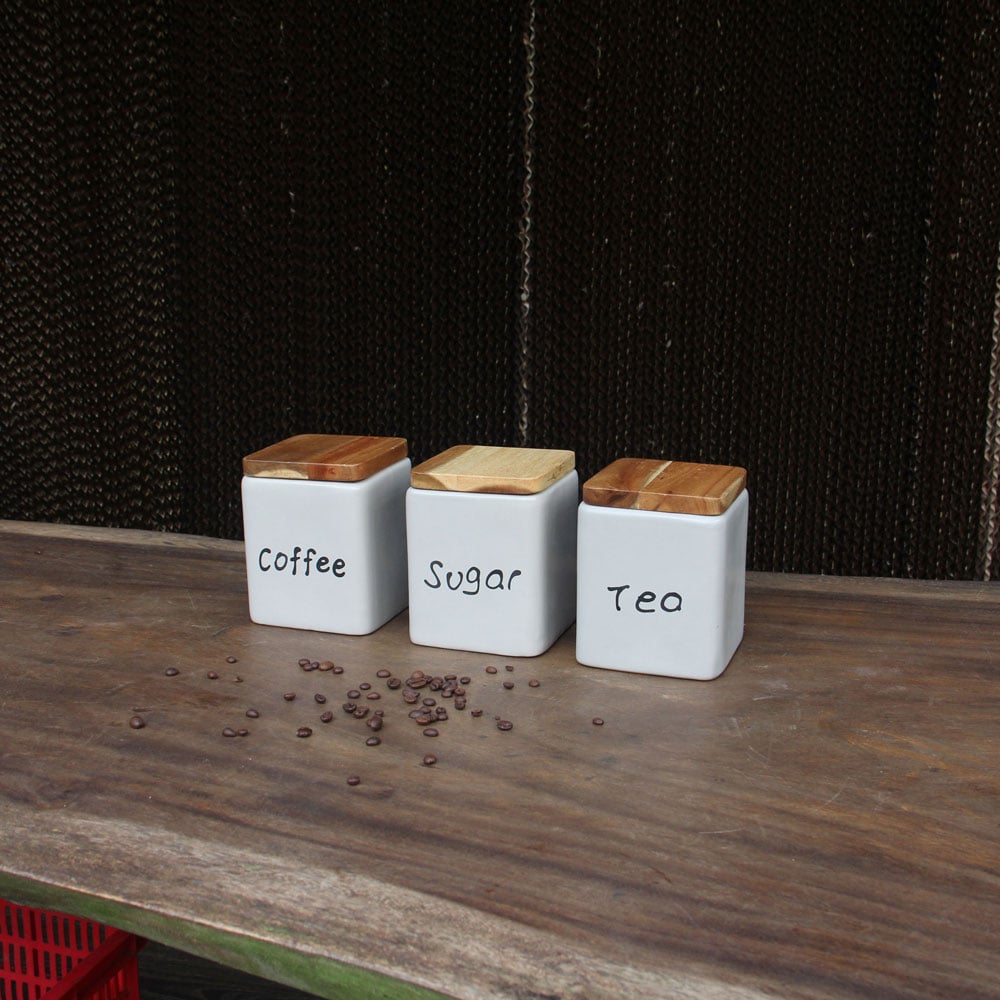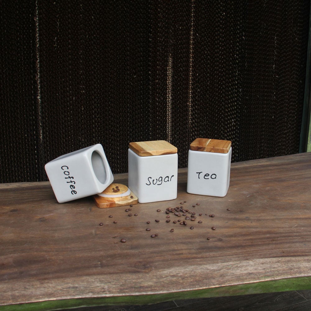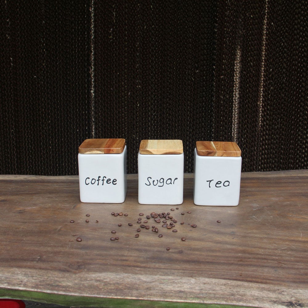 Clearly labeled for Sugar, Tea, and Coffee, this coordinated set keeps essentials neatly stored and easy to access. The smooth glazed finish is simple to clean, while the minimalist square silhouette blends beautifully with modern, farmhouse, or contemporary kitchen décor. Perfect for countertops, open shelving, or coffee stations, these canisters combine practicality with natural design.