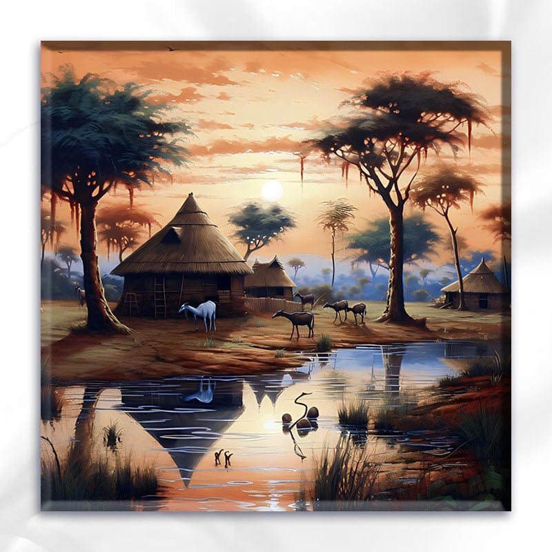 sunset riverside hut abstract Art Stock Photos