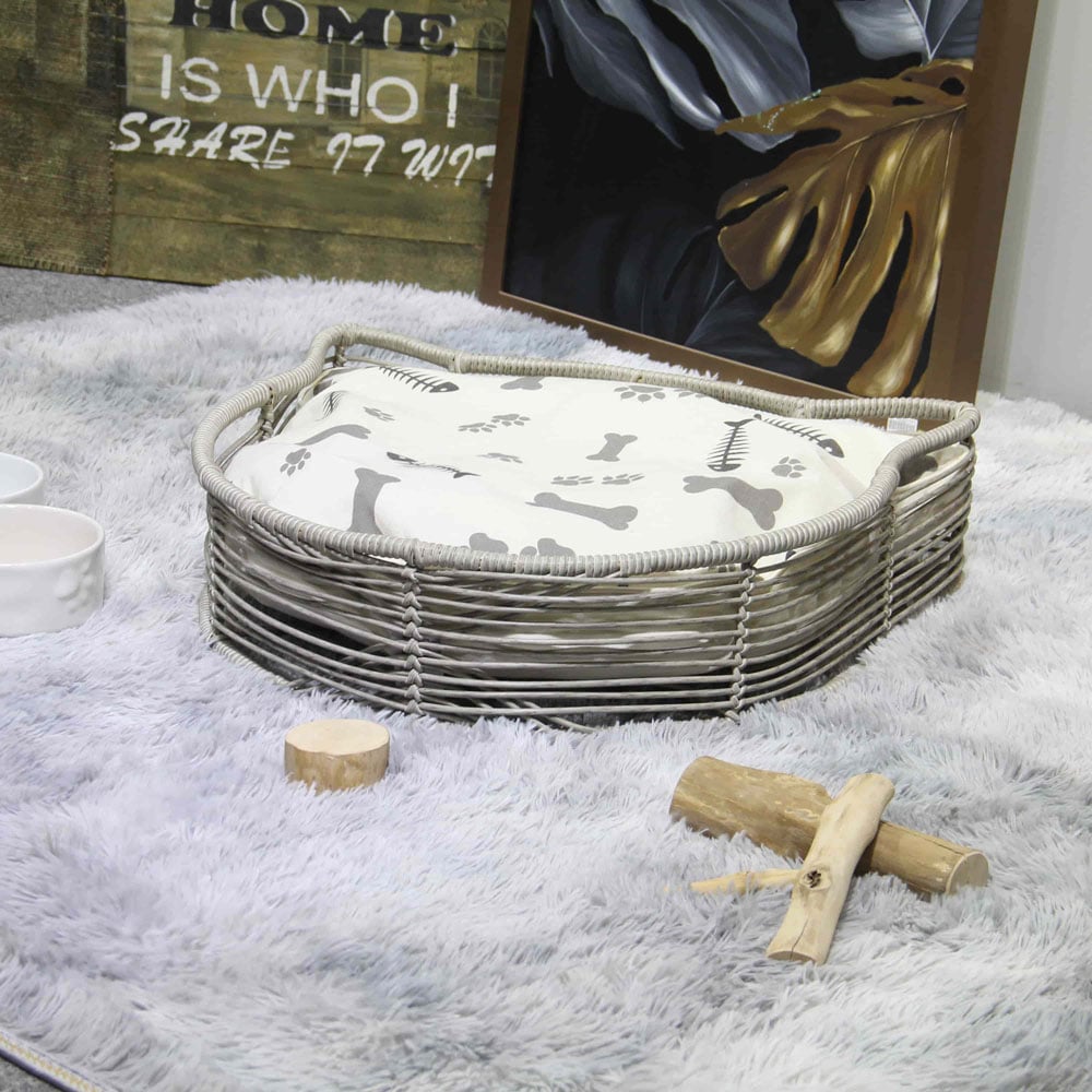The breathable open-weave structure promotes airflow to keep pets cool and comfortable, while the removable soft cushion provides plush support for everyday relaxation and easy cleaning. Its neutral tones and refined craftsmanship make it a beautiful addition to living rooms, bedrooms, or pet corners in contemporary homes.