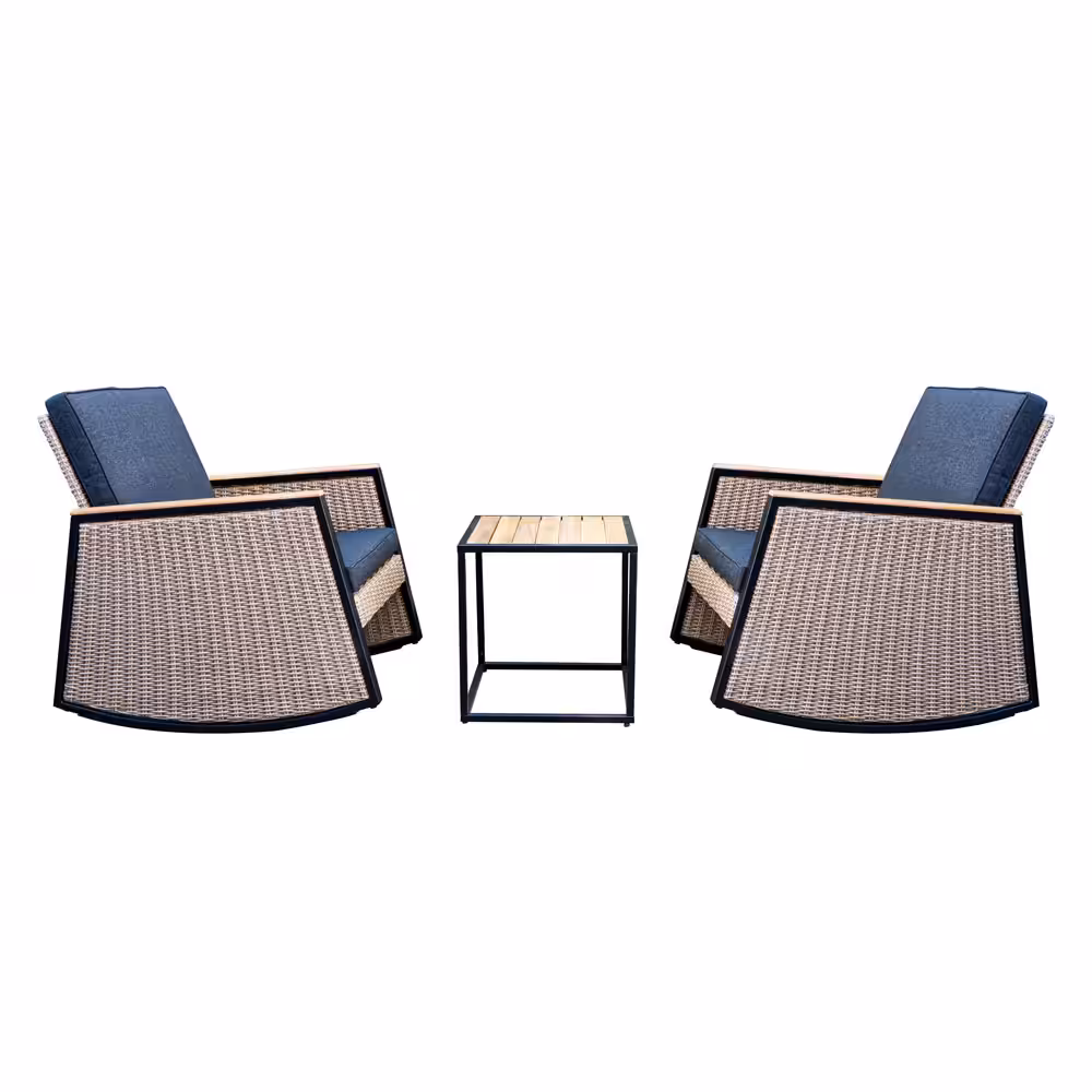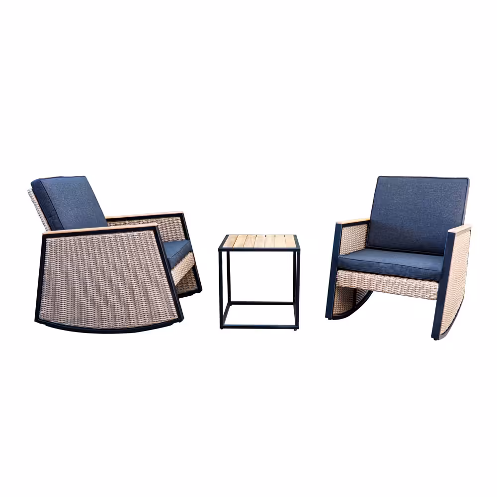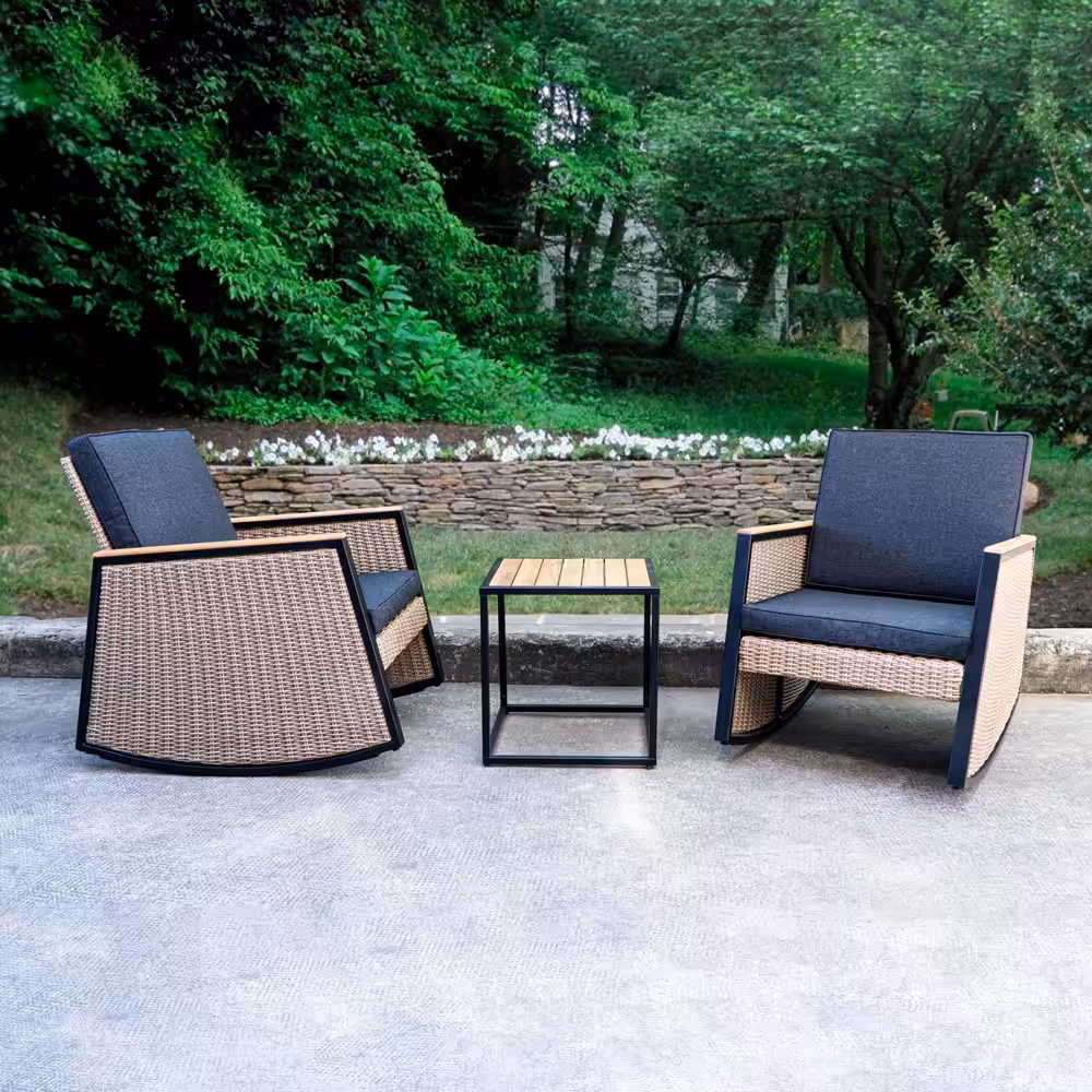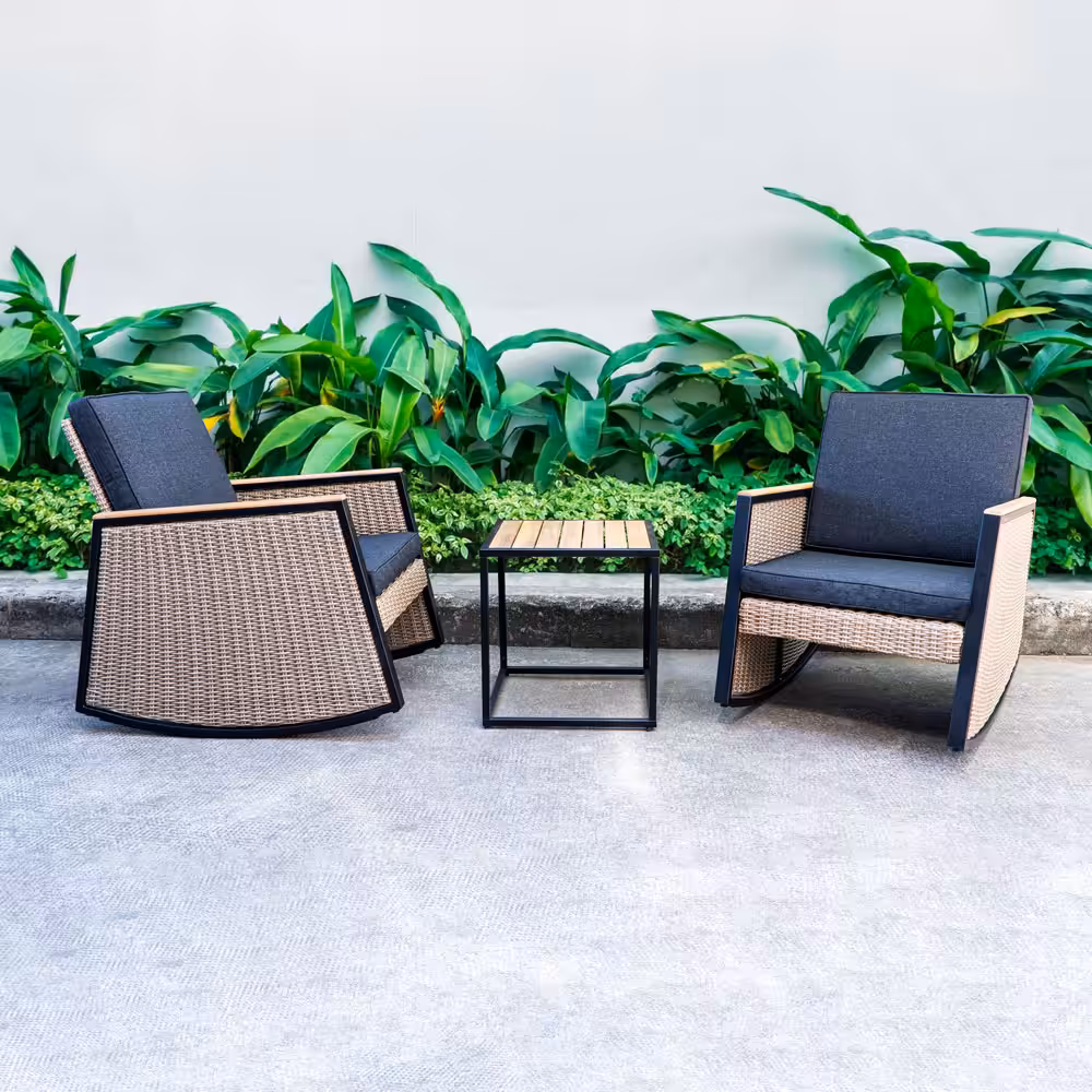 Create a quiet corner for relaxation with this thoughtfully designed patio bistro rocking chair set, where modern structure meets natural warmth.