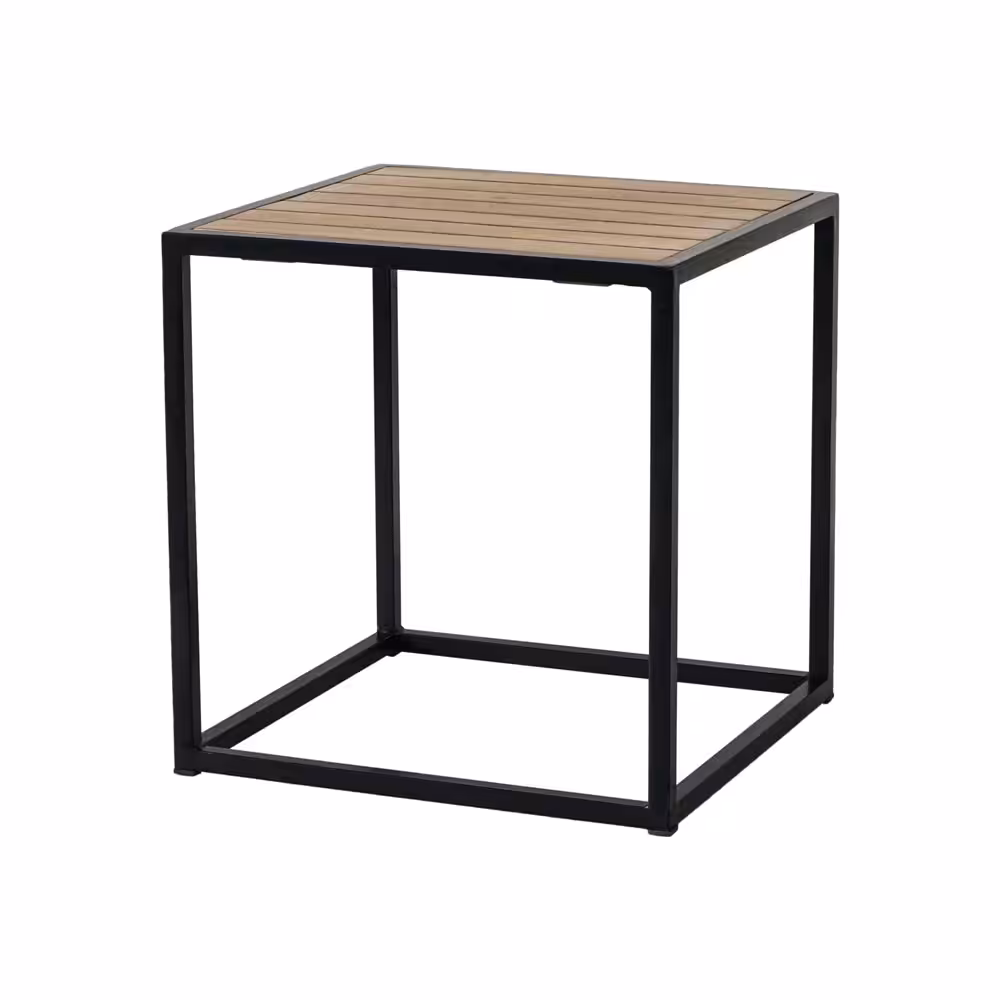 The matching acacia-top side table adds a warm natural surface for drinks, décor, or small essentials, completing a compact setting designed for real daily living—not just display.