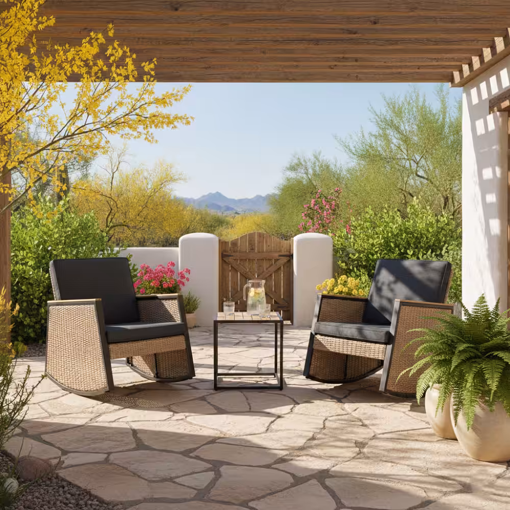 Each gently curved rocking chair is crafted to encourage slow, comfortable movement, helping you unwind with morning coffee, an afternoon book, or peaceful evening conversations.