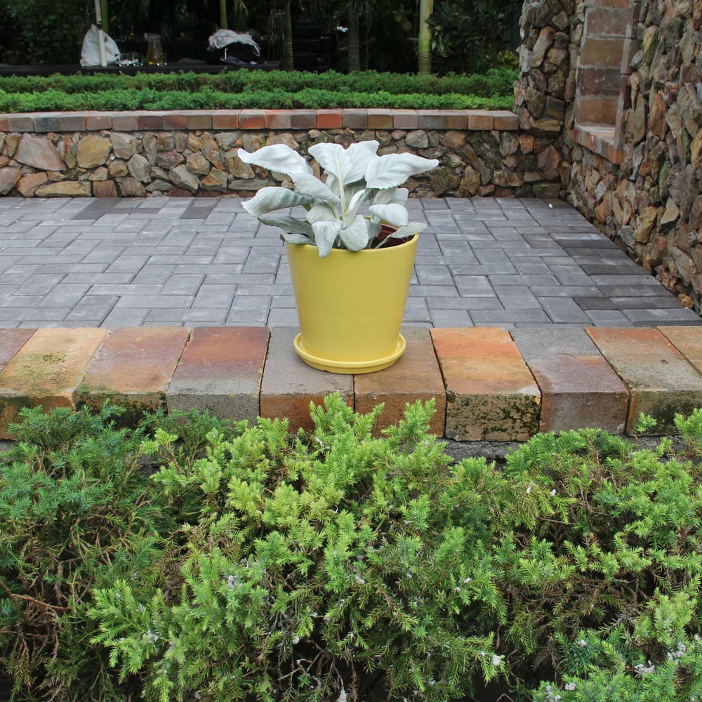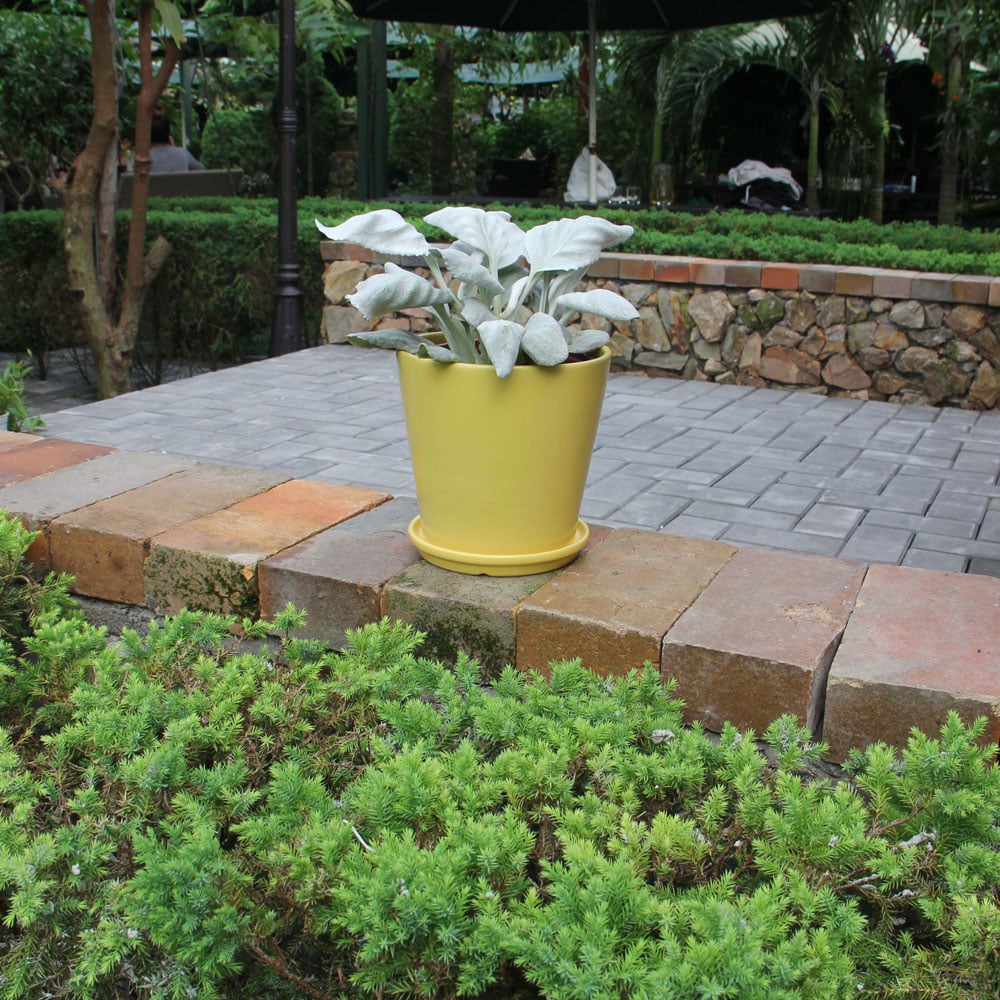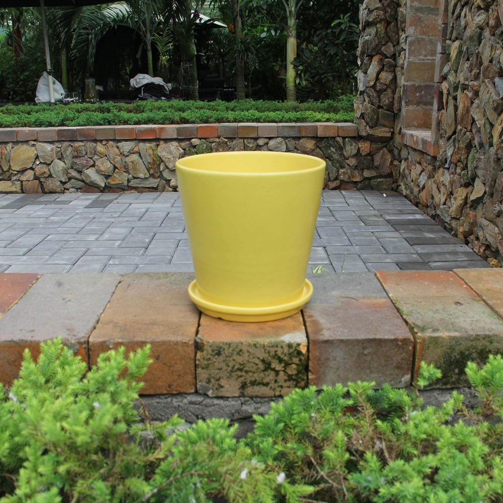 Yellow Stoneware Indoor Planters with Drainage Hole and Matching Dishes (Set of 2)